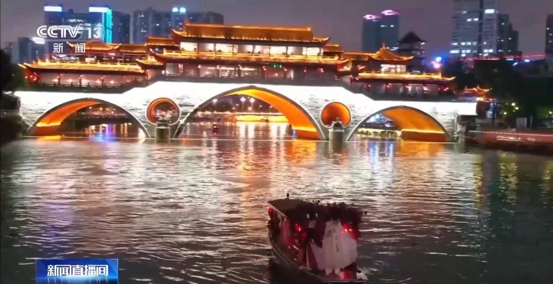 成都锦江景区推出国内首个数字游船体验项目,游客乘船穿梭于“花重锦官城”“熊猫花灯”等唯美数字场景,与虚拟人物趣味互动,沉浸式感受千年锦城的春日繁华。