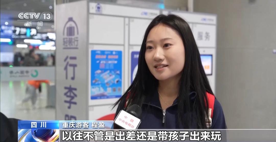 重庆游客 程盈:以往不管是出差还是带孩子出来玩,最怕拖着行李箱到处跑,现在一出站,就可以直接将行李转运到酒店,非常方便,这种暖心的服务让人感到特别温暖。