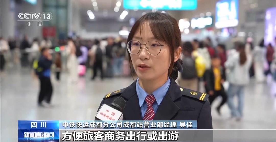 中铁快运成都分公司成都站营业部经理 吴佳:我们会在取件后5小时内送达指定位置,方便旅客商务出行或出游,目前我们的服务范围在距离车站35公里范围内。