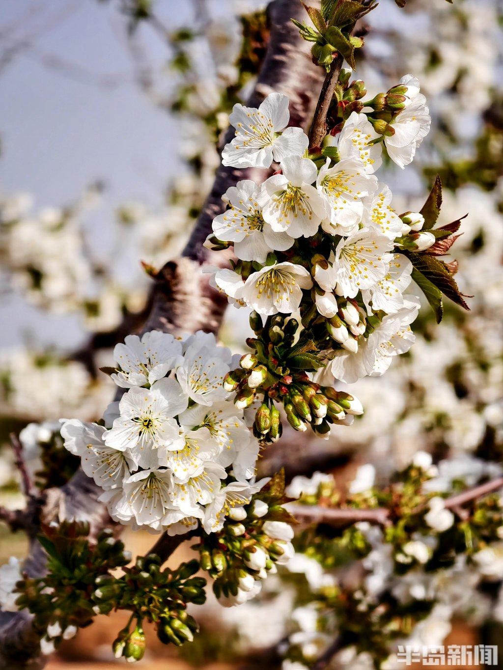 4月5日,平度市多地的露天大樱桃花进入盛花期。漫山遍野的樱桃花竞相绽放,白色的花海如云似雾,将春日田野装点得格外浪漫。微风拂过,空气中弥漫着淡淡甜香。