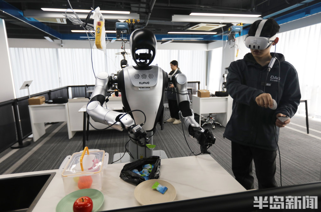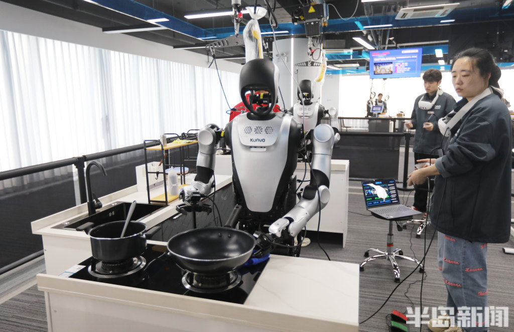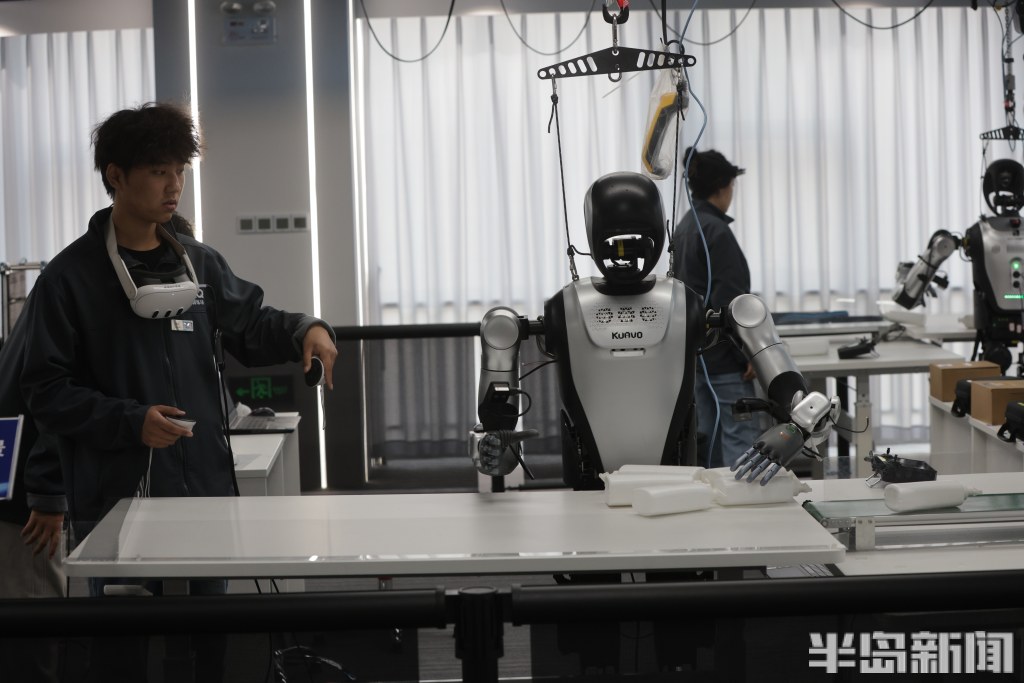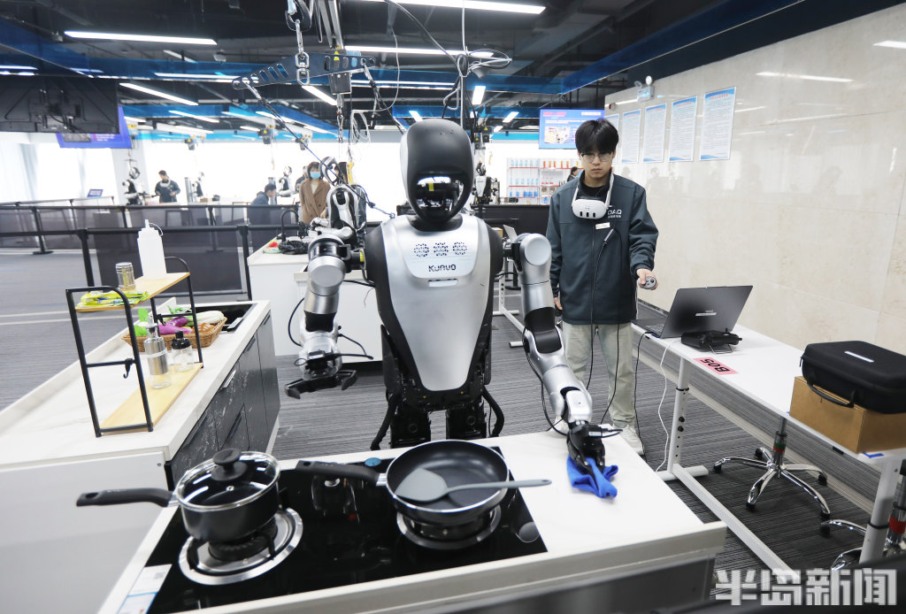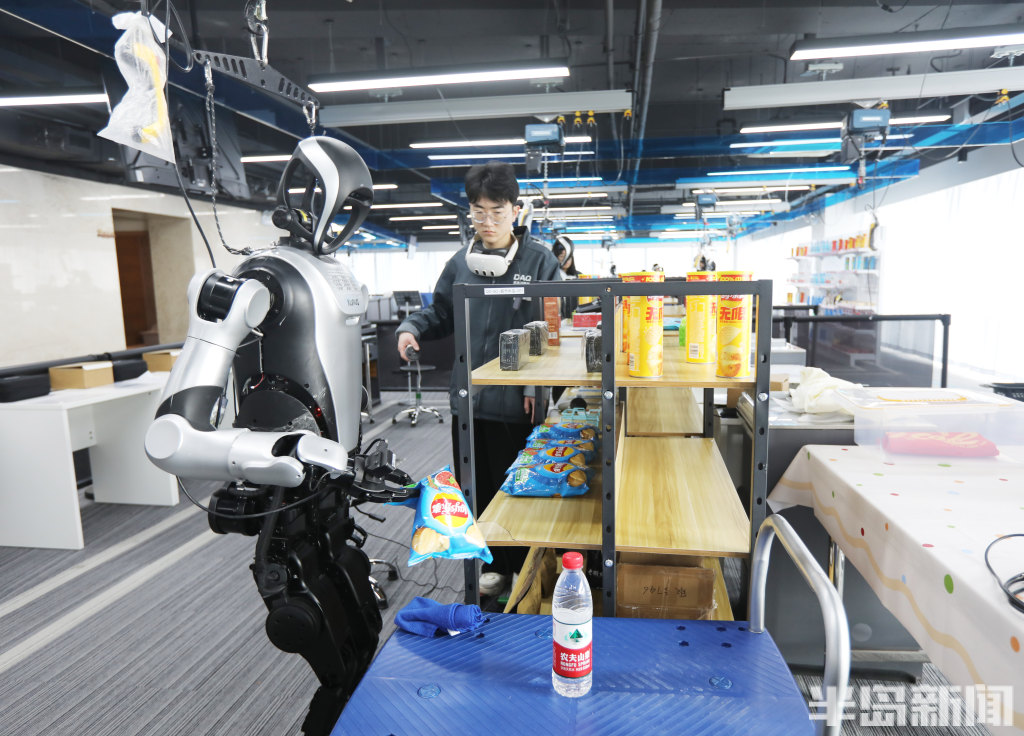 在青岛有个人形机器人训练基地,工作人员专门给机器人搭了各种模拟生活和工作的场景。模拟厨房里,老师带着机器人练炒菜、洗碗、切菜备菜这些家务活;模拟超市里,机器人能熟练整理货架上的货,还能给 “顾客” 递东西;模拟流水线上,机器人又快又准地分拣快递包裹。