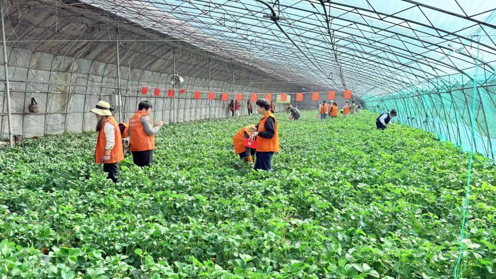 果蔬采摘与田园体验,成为清明假期吸客引流的“王牌项目”。片区内力源生态农场、八零小伙农场、泰禾谷丰生态园等数十家农场各具特色,游客提着竹篮穿梭田间,采摘草莓、蓝莓等新鲜果蔬,带着泥土清香的鲜果成为最受欢迎的伴手礼。“游客体验感十足,园区营收也实现稳步增长。”泰禾谷丰生态园负责人于洁介绍,假期期间园区日均接待游客超500人次。不远处的鼎盛庄园农家宴与片区内各大采摘园区深度联动,假期期间客流火爆。庄园坚持就地取材,将游客刚从田间采摘的新鲜蔬菜、林间散养的土鸡土鸭精心烹制,端上一桌桌原汁原味、鲜香浓郁的乡土盛宴。不少家庭赏花、采摘过后直奔餐桌,在田园风光中大快朵颐,一站式体验“采摘尝鲜+农家美食”的惬意与满足,沉浸式感受看得见山水、记得住乡愁的乡村慢生活。