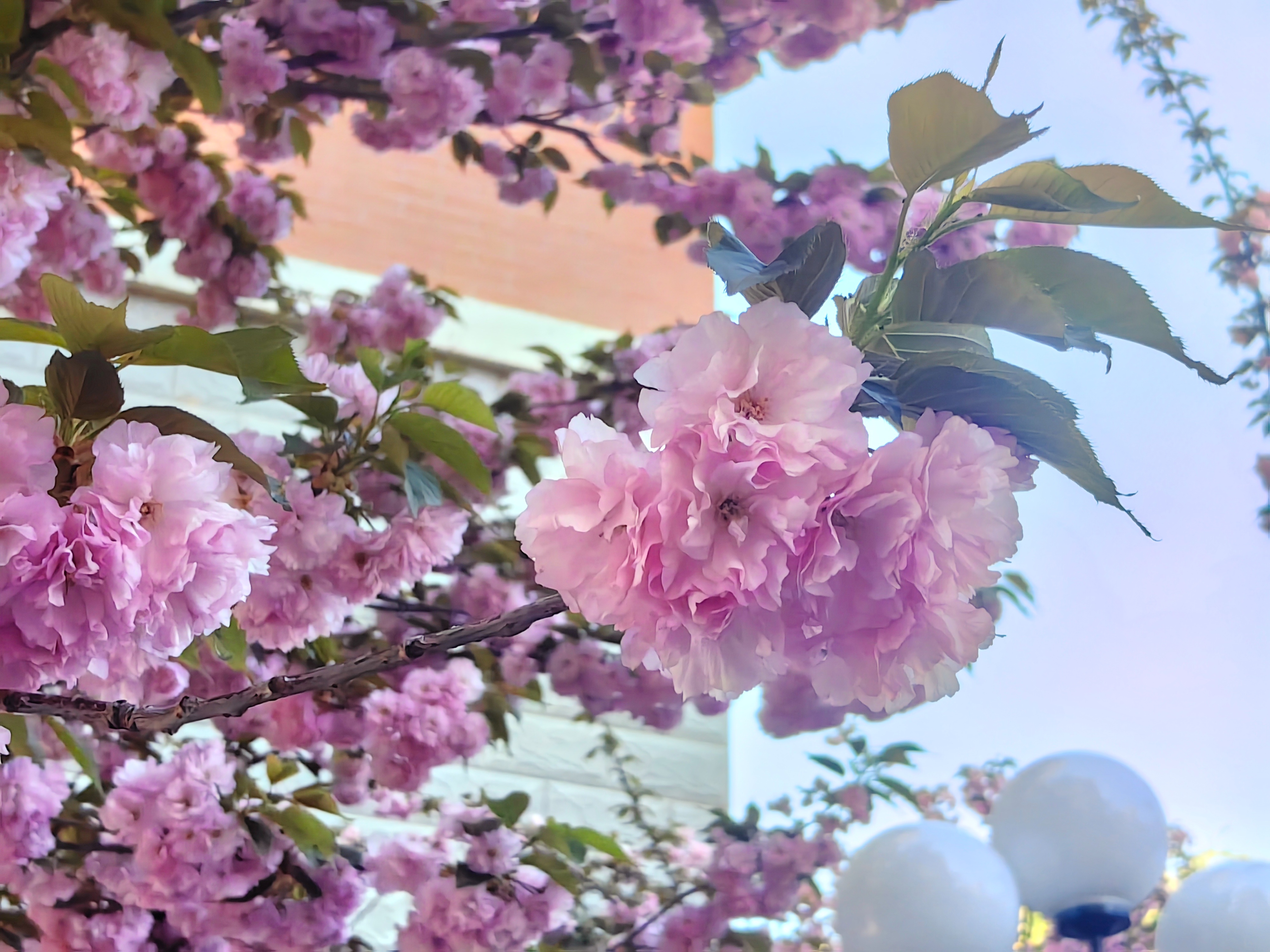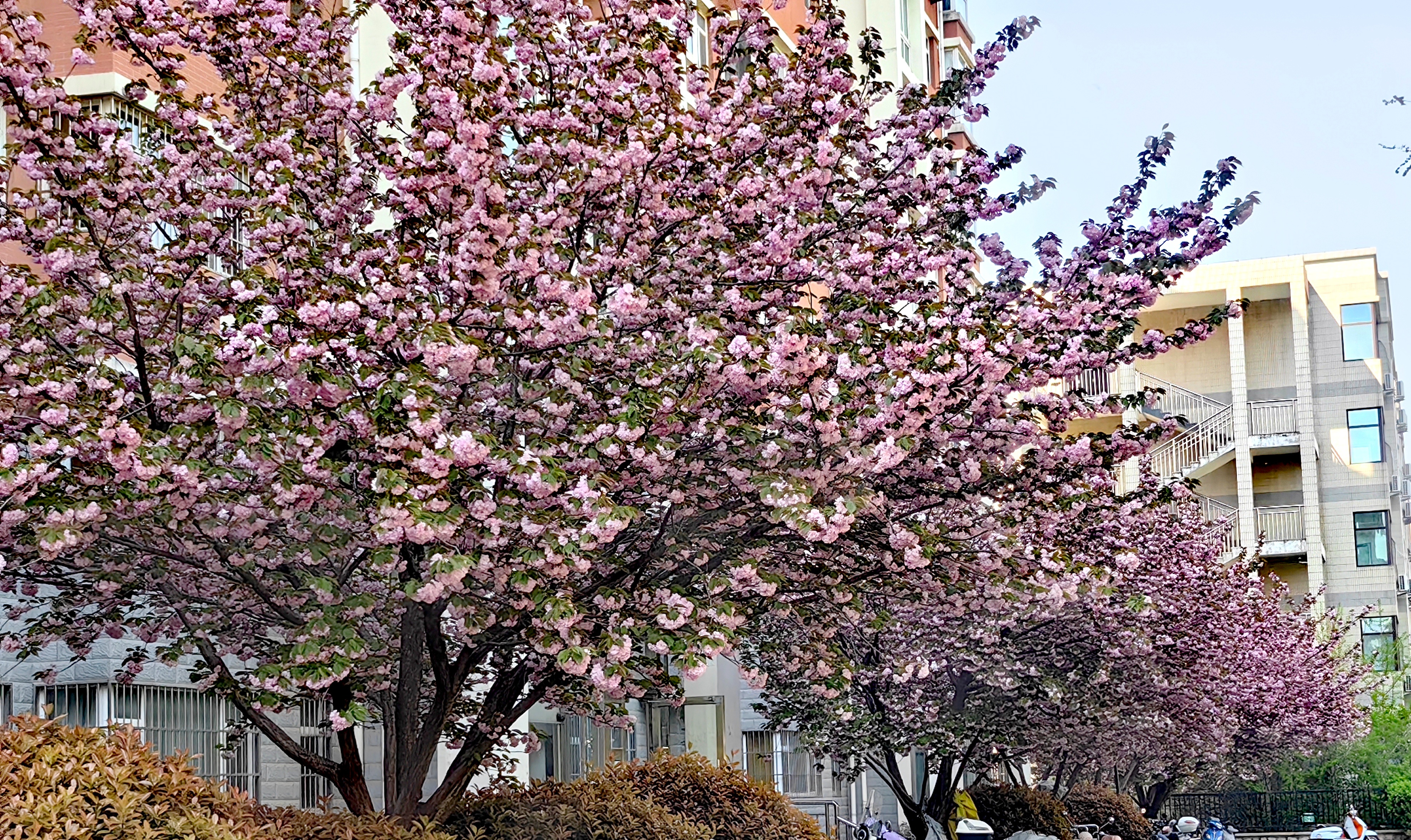 暮春不晚,樱你而来。山财大燕山校区的晚樱,承包了整个春天的温柔。 春风一吹,满树粉樱轻轻摇晃,花瓣簌簌落下,整个校园都被粉色浪漫包围了。(大众新闻记者刘蓬基)