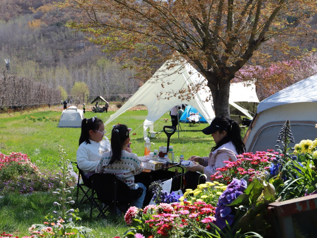 假期期间,黄泥巷村、大下庄村都成为游客探寻春意的热门打卡地。在黄泥巷村,新业态与新景观交相辉映:新开业的“见山窑咖”将窑炉面包与现代咖啡文化巧妙融合,吸引了大批年轻游客专程前来品鉴打卡,文艺范儿与乡村野趣完美交织。而大下庄村的无比方花园内繁花似锦,成为游客踏青赏春的绝佳取景地。漫步在古朴的村落石巷,随处可见身着汉服的游客在山里河边留影。“我特意带老人孩子来,到了之后发现真是来对了,无比方花园里的花开得正好,孩子玩得很嗨,还能体验原汁原味的乡村生活,老人也觉得特别亲切,这种‘接地气’的踏青体验太难得了!”来自青岛市北区的游客张文文兴奋地说,他们一家三口一大早就驱车赶来了。据统计,清明节期间,片区内农家乐生意火爆,民宿预订率达90%,乡村游成功转化为“春日经济”,有效带动了村民增收。