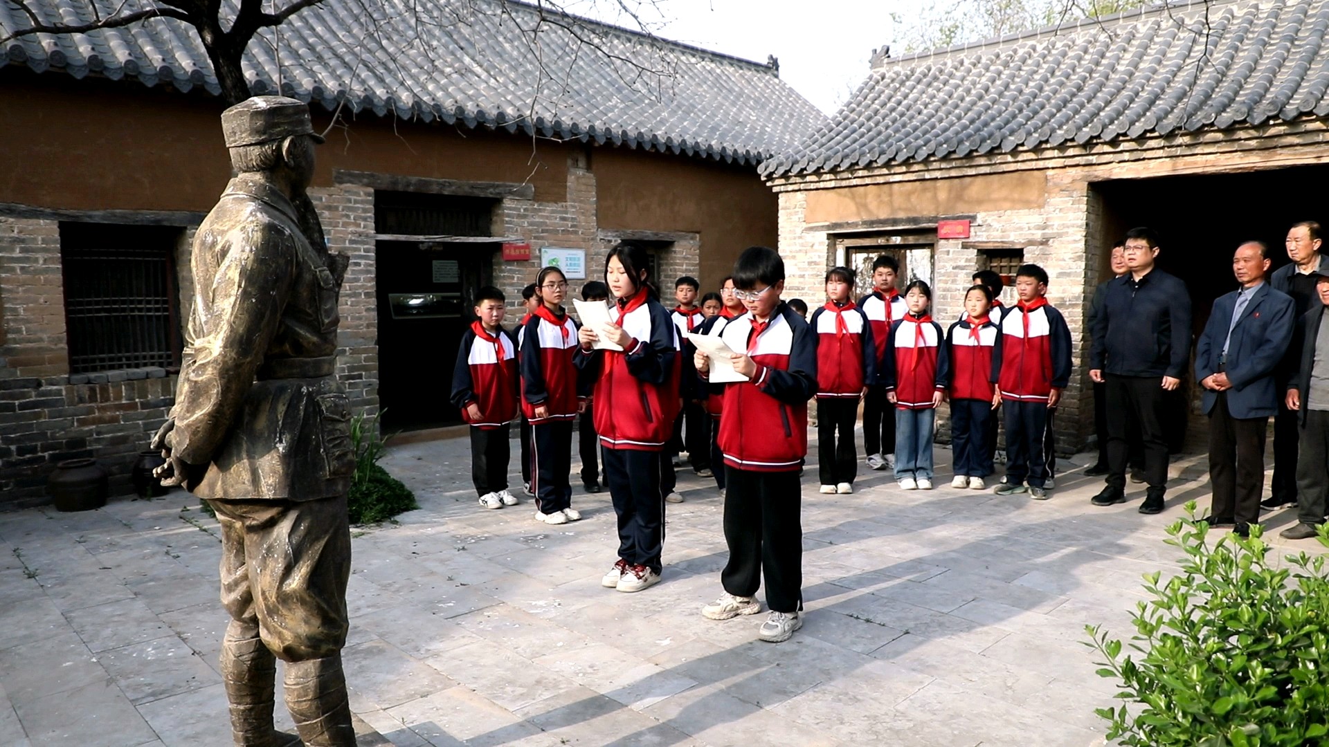 活动现场,一场庄重的红色书信宣读仪式温情开展。学生代表、青年干部代表、老党员代表依次登台,共同诵读写给革命先烈的书信。字字饱含深情,句句尽显赤诚,用质朴的语言诉说对革命先烈的深切缅怀,表达传承红色精神、勇担时代使命的坚定决心。书信中,既有对先烈浴血奋战、保家卫国的崇高敬意,也有新时代青少年、党员干部不忘初心、砥砺前行的责任担当,铿锵有力的诵读声在旧址上空回荡,深深触动着每一个人的心灵。