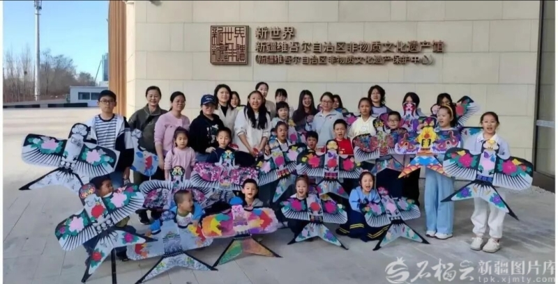 在新疆非遗馆,亲子家庭展示做的纸鸢。新疆非遗馆供图