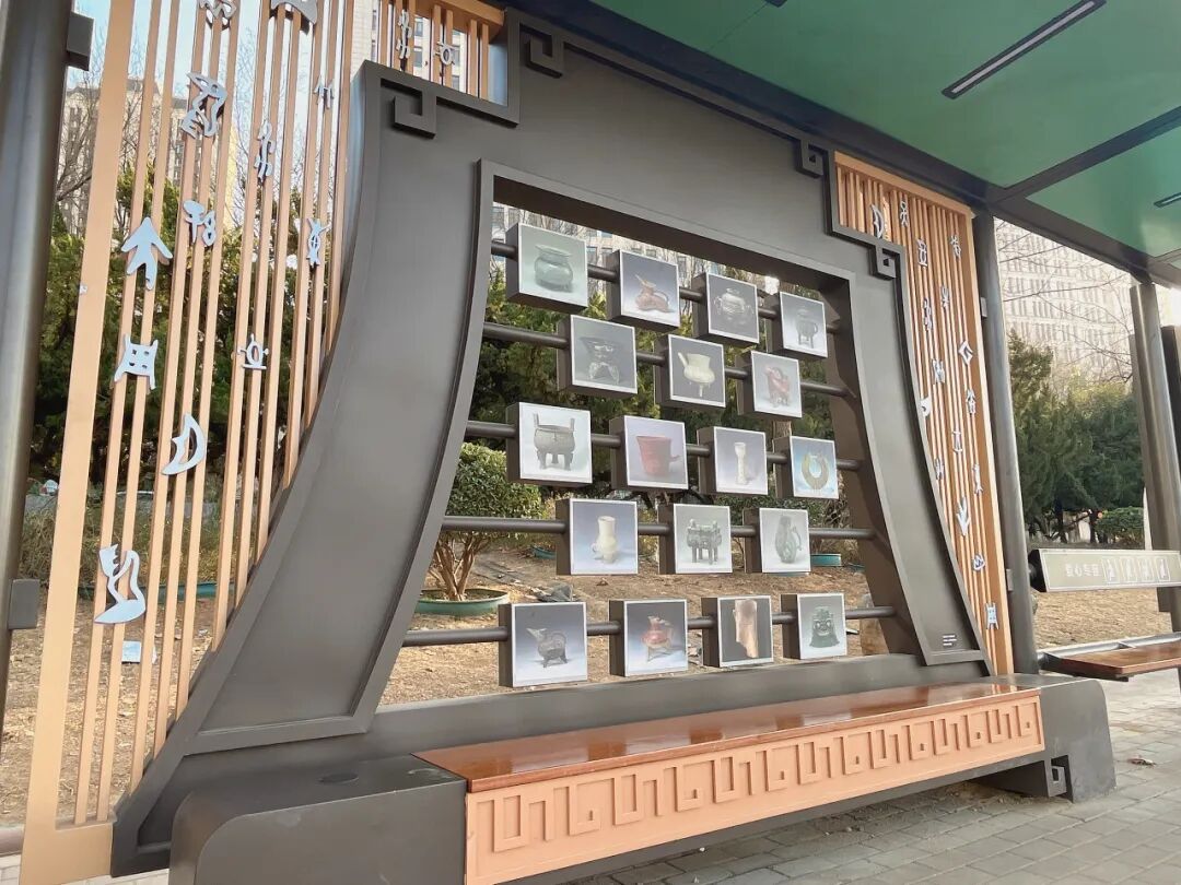 此次公交设施升级不仅注重实用功能,更深度挖掘泉城历史文化与地域特色,将文化元素融入候车亭设计,使公共交通空间成为展示城市软实力的重要窗口。山东博物馆站提取亚丑钺、《孙子兵法》竹简等文物元素,以木色格栅与甲骨文字符营造厚重历史氛围。