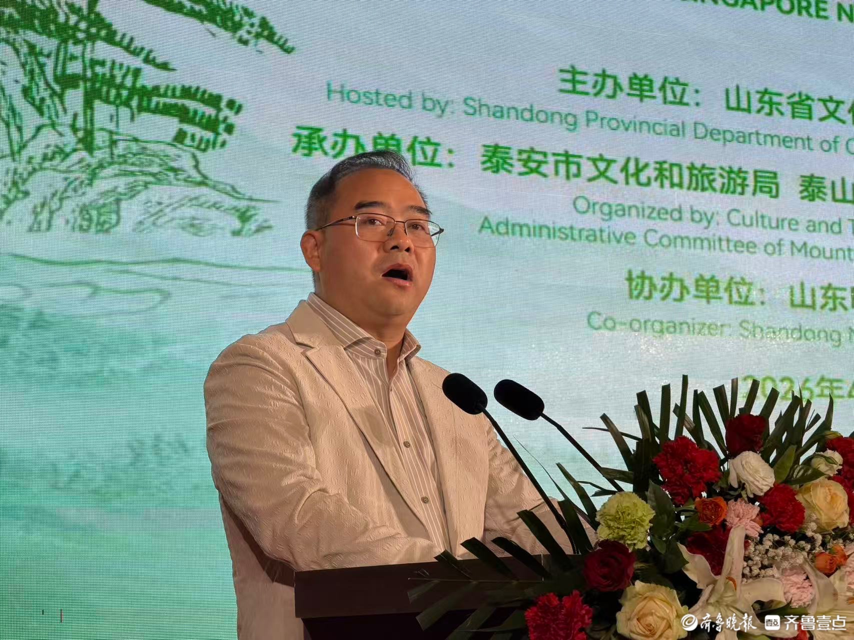 4月6日,由山东省文化和旅游厅、泰安市人民政府主办,泰安市文化和旅游局、泰山景区管委承办,山东明晟国际旅行社协办的“春风逐花开 乐享山东游”新加坡新星旅游集团团队山东行欢迎仪式在泰安市举行。泰安市政府副市长冯能斌出席活动,并向新加坡新星旅游集团董事长高天峰颁发“2026泰安文旅新加坡入境旅游市场战略合作伙伴”荣誉证书。山东省文化和旅游厅对外交流与合作处处长马吉霞,泰安市文化和旅游局党组书记、局长李洪洲,泰山景区党工委委员、管委会副主任李峰,新加坡影视明星向云等参加活动。
