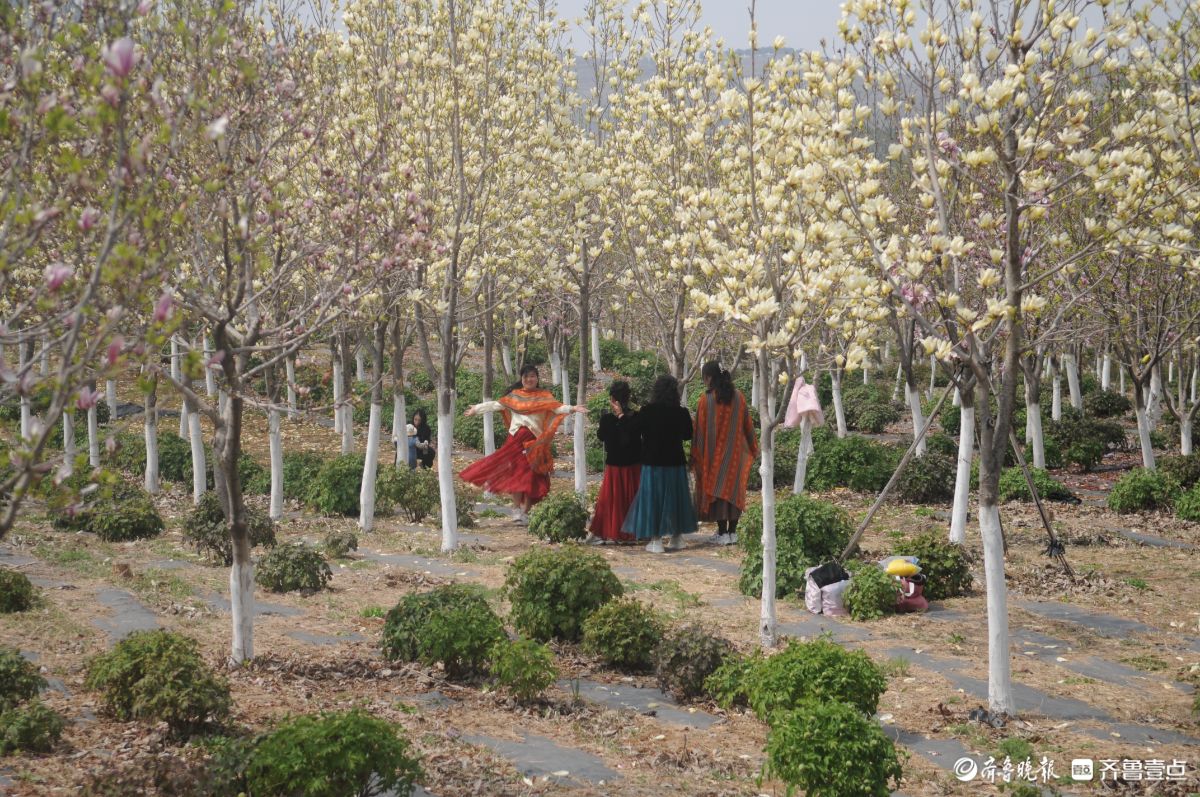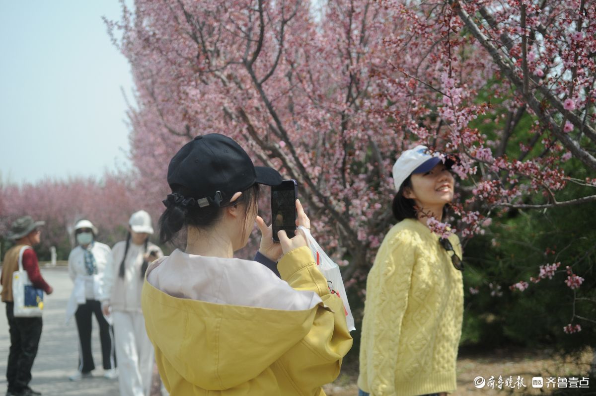 4月5日,市民正在淄博镶月湖公园拍照打卡。位于淄川区西河镇马家庄村的镶月湖公园占地1000多亩,不仅有廊桥映月,宝塔叠月,百花印月3个湖面,还有25大类10万多株花卉,从3月底美人梅盛开到5月上旬流苏次第开放,花花世界,香香相连,吸引着众多游客免费前来赏花游玩,休闲健身。闫盛霆摄