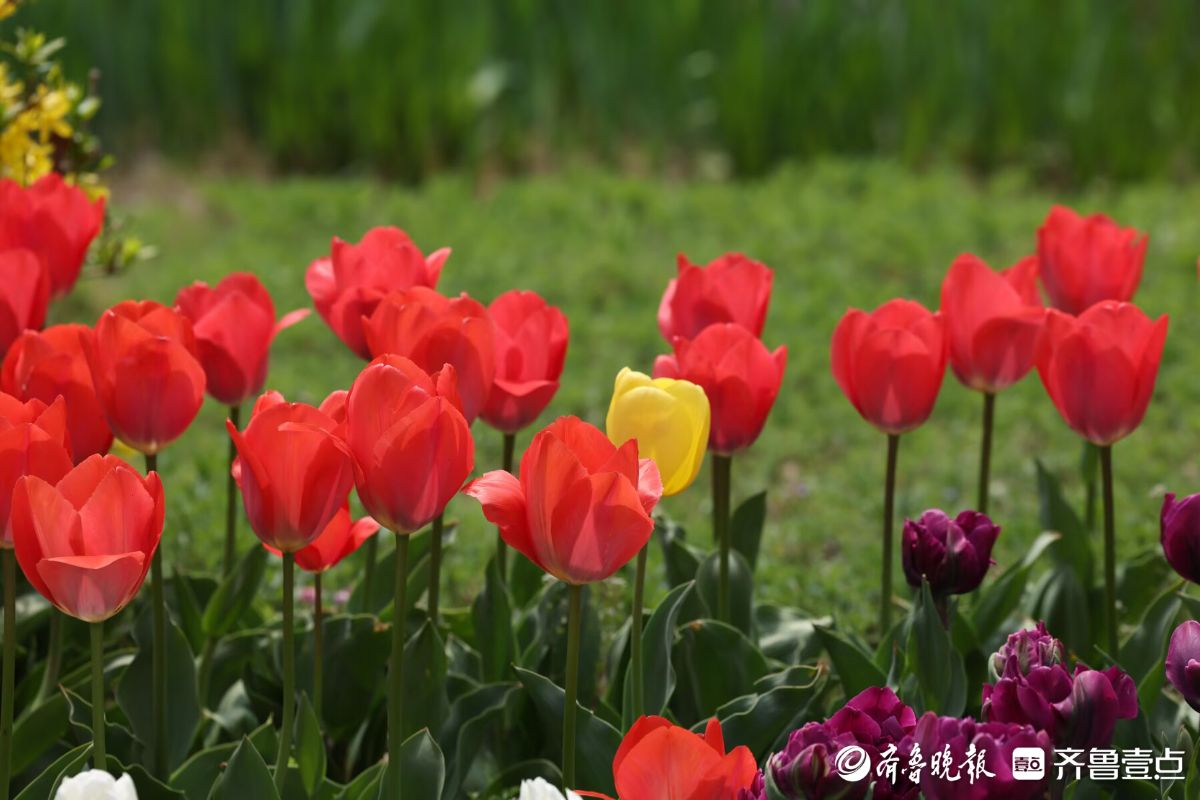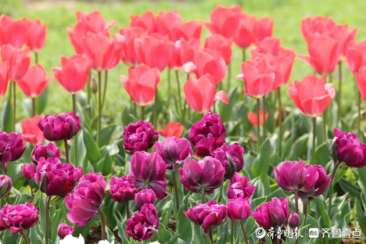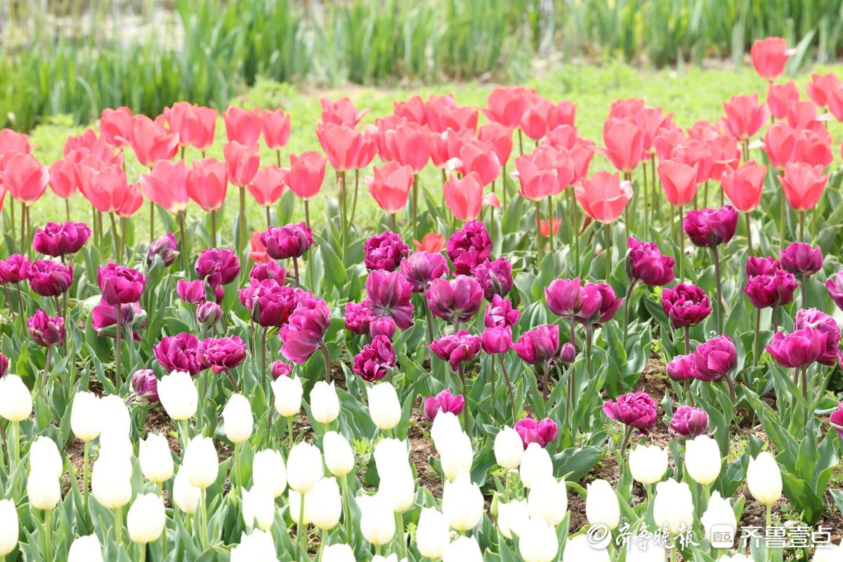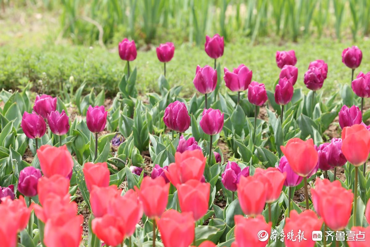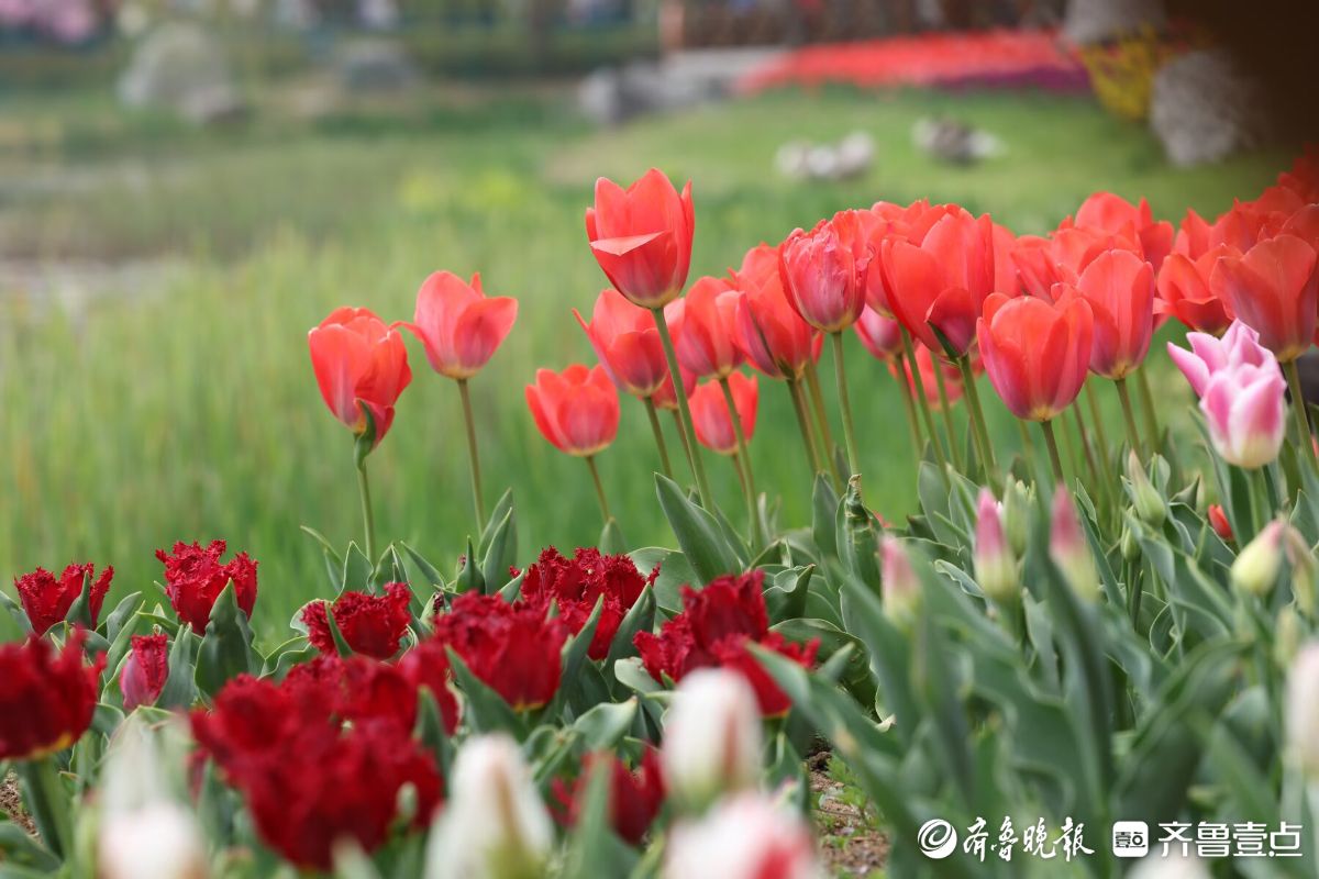 五颜六色的郁金香盛开,四面八方的游人来欣赏