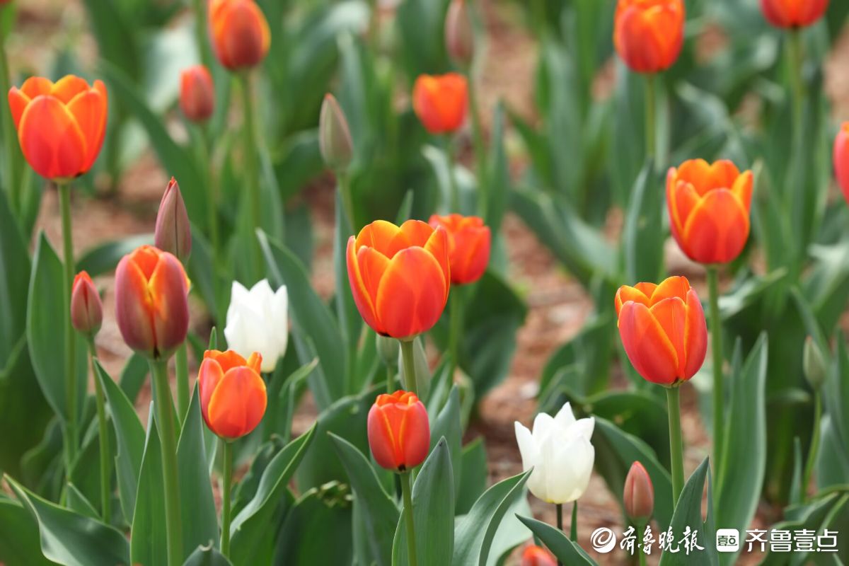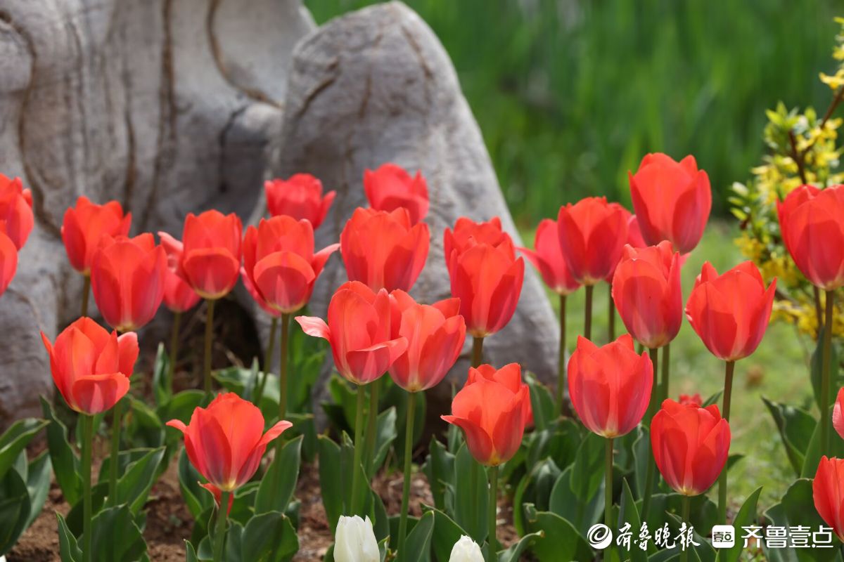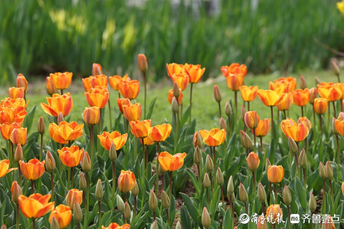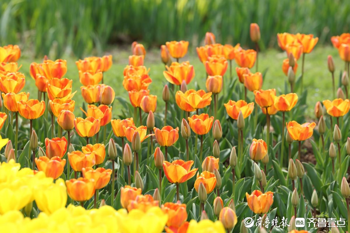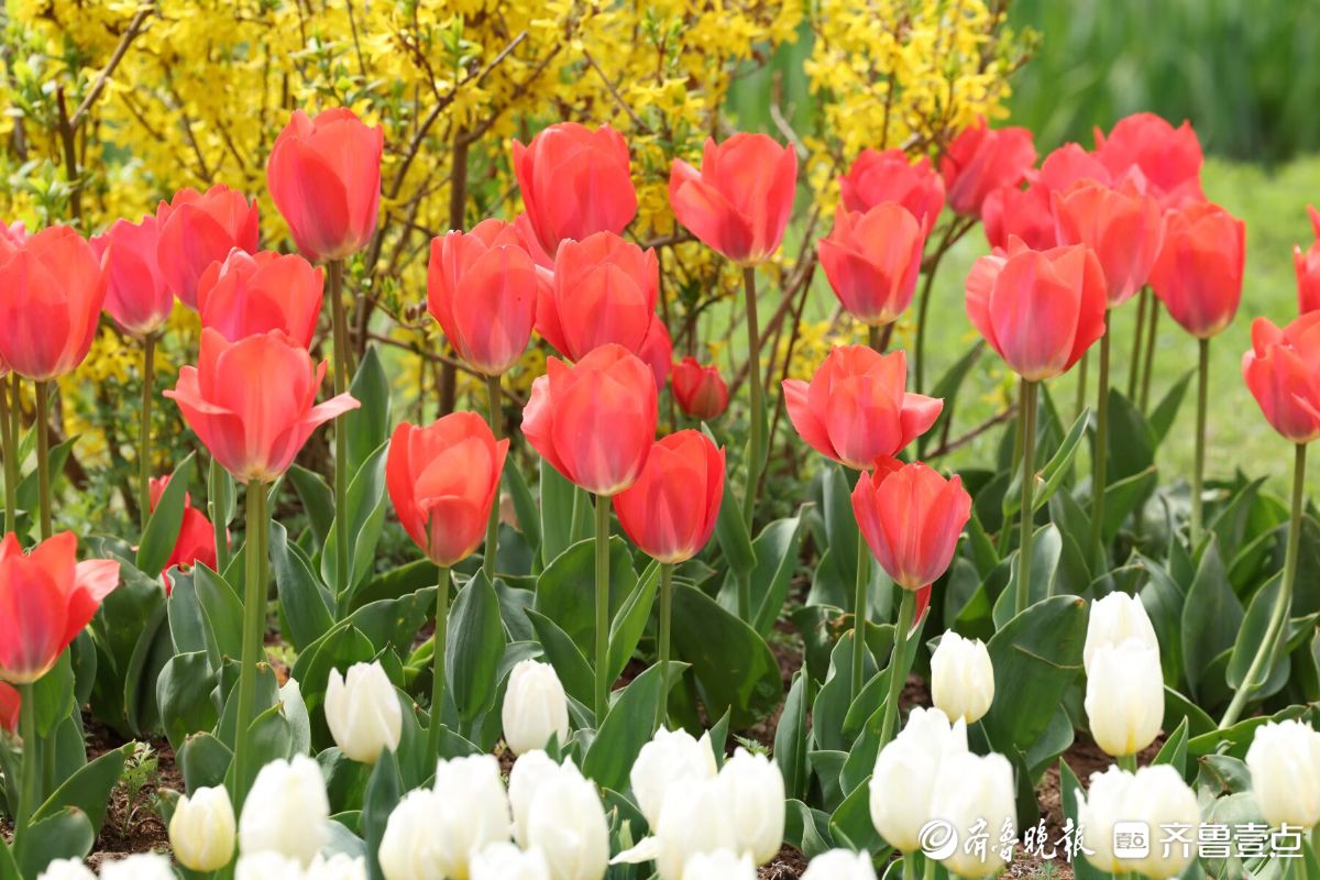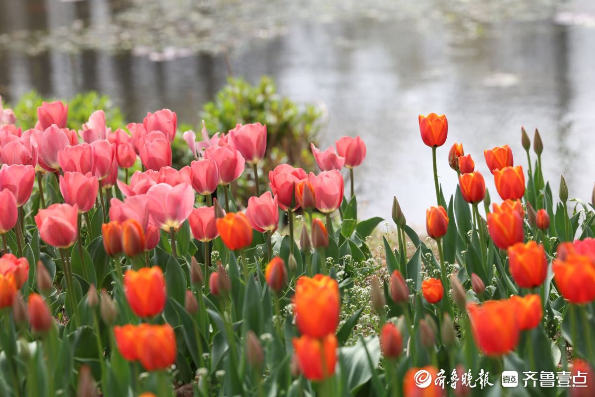 五颜六色的郁金香盛开,四面八方的游人来欣赏