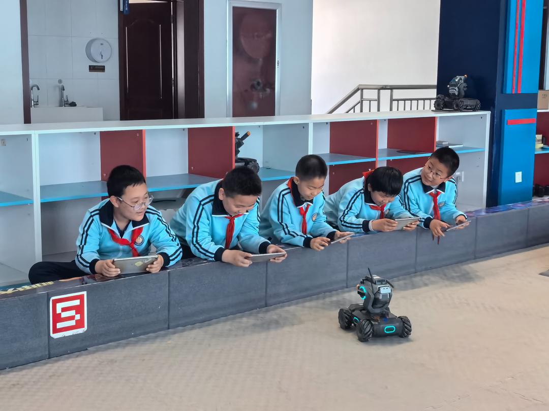 走进5D影院,队员们沉浸式体验恐龙世界主题影片,仿佛瞬间穿越回远古侏罗纪,与恐龙同行;踏入“元宇宙探索空间”,在如梦如幻的平行空间里,队员们用好奇的指尖触摸着“星云”,宇宙的深邃与神秘,在这一刻变得如此清晰可感;在“太空之眼”展区,队员们专注聆听老师讲解八大行星的运行轨迹,队员们追寻着地球的起源,一步步揭开行星世界的面纱;队员们通过零距离感受 1:1全尺寸空间站,了解了航天员在空间站的状态,体验了航天员们的航天训练,化身为一个个“小小宇航员”,让队员们过了一把“航天瘾”;“3、2、1,发射!”随着倒计时落下,模拟火箭缓缓升空,逼真的音效搭配震撼的视觉效果,让队员们仿佛亲临航天发射现场;在机器人编程中心,队员们化身“小小程序员”,认真学习编程逻辑,亲手编写指令,看着自己操控的小车顺利完成任务,真切体验到编程的乐趣与成就感;“无人机模拟课程”则让队员们体验了“第一视角 ”的操控乐趣;在机甲大师机器人对战环节,队员们分组操控机甲机器人,在竞技场地内展开激烈比拼;队员们还在现场观看了机器人编程舞蹈表演及机器狗互动表演。
