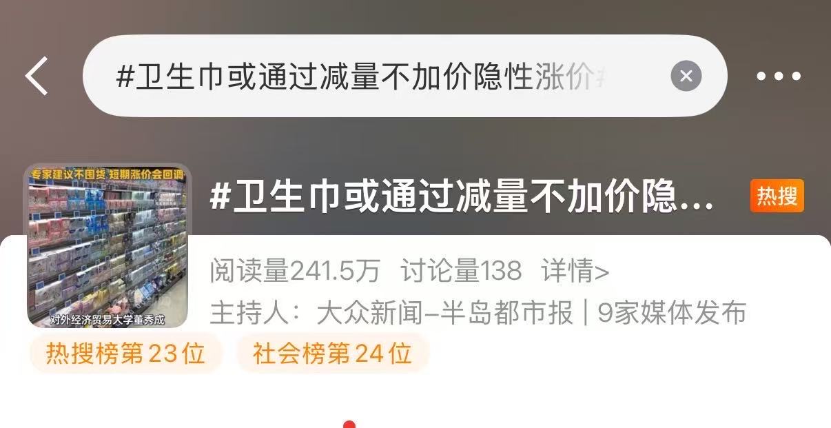 #卫生巾或通过减量不加价隐性涨价#