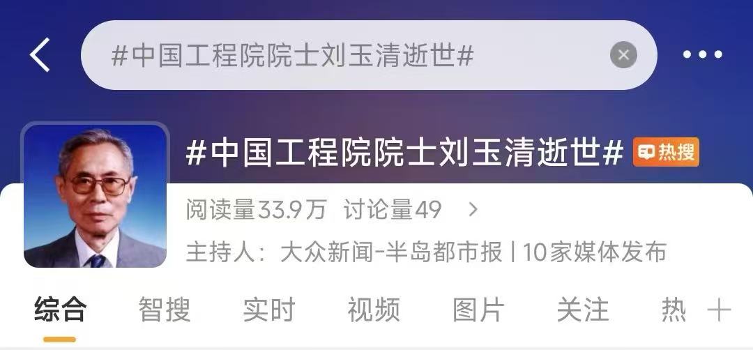 #中国工程院院士刘玉清逝世#