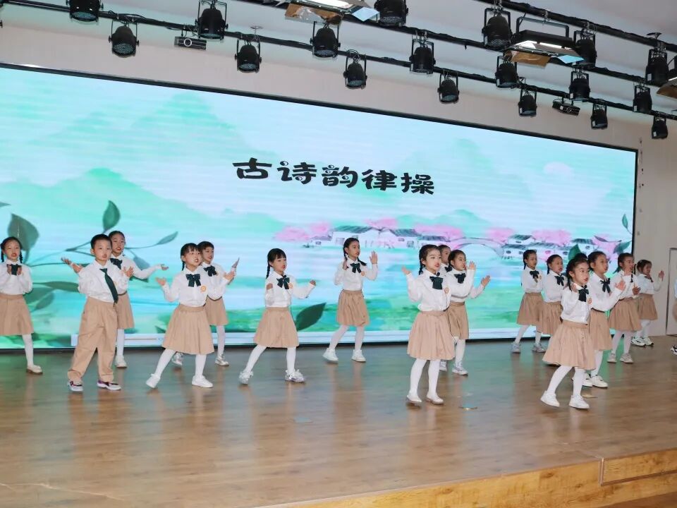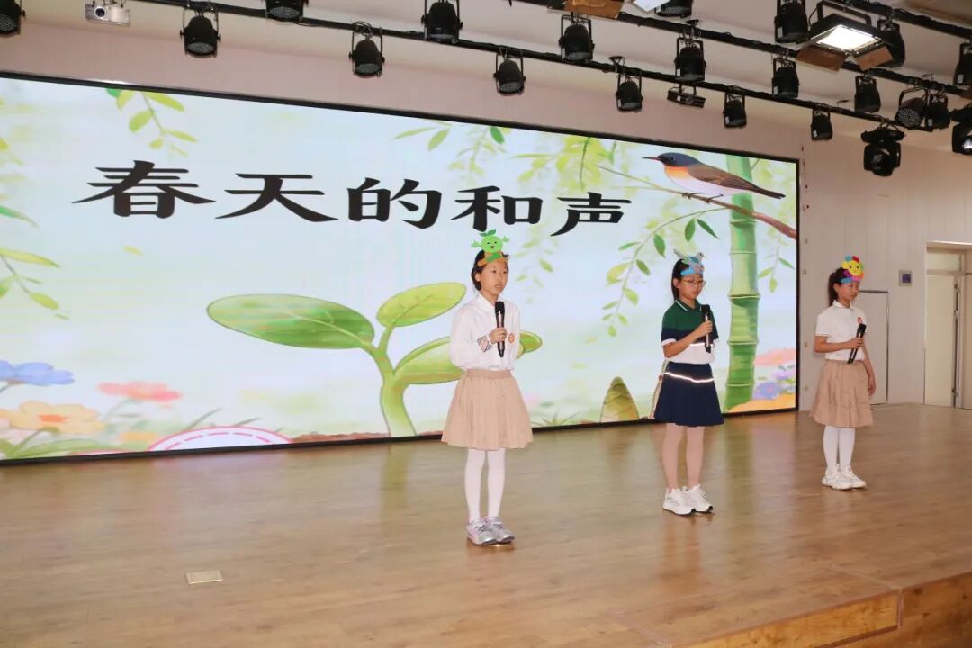 本次语文节紧扣春日主题,将中华经典文化与语文实践深度融合,设计了一系列特色活动,让学生在沉浸式体验中感受语文魅力。闭幕式现场节目精彩纷呈,亮点突出。古诗韵律操将经典诗词与动感韵律结合,孩子们踏着节拍吟诵经典,让千年诗韵焕发新生;《唐诗里的中国》展演中,孩子们以深情诵读展现唐诗中的锦绣山河,传递中华文化的博大精深;四年级“春天的和声”节目,以纯净童声诠释春日美好,营造出诗意氛围。