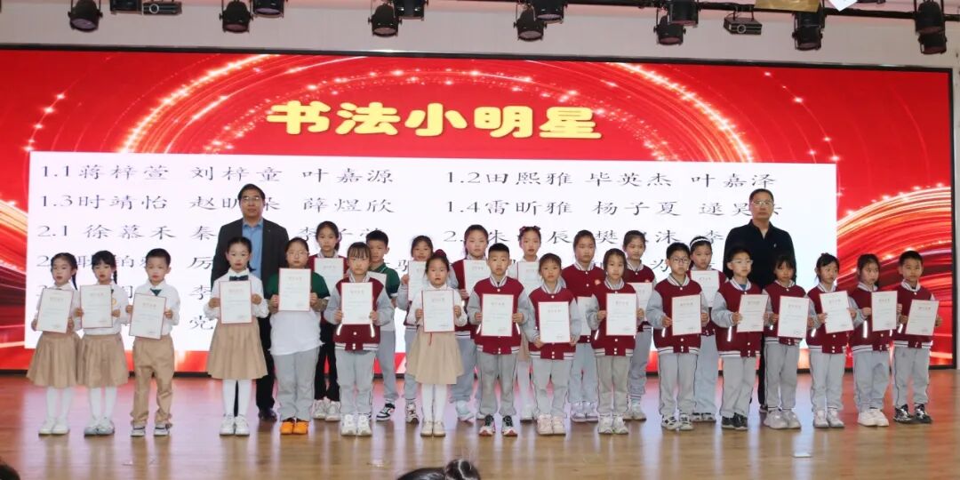 闭幕式上,学校举行颁奖典礼,对语文节中表现突出的学生予以表彰,颁发“诵读之星”“书法小明星”“故事大王”“手抄报风采之星”等荣誉称号,校长臧玉国、副校长田传峰为获奖同学颁奖。