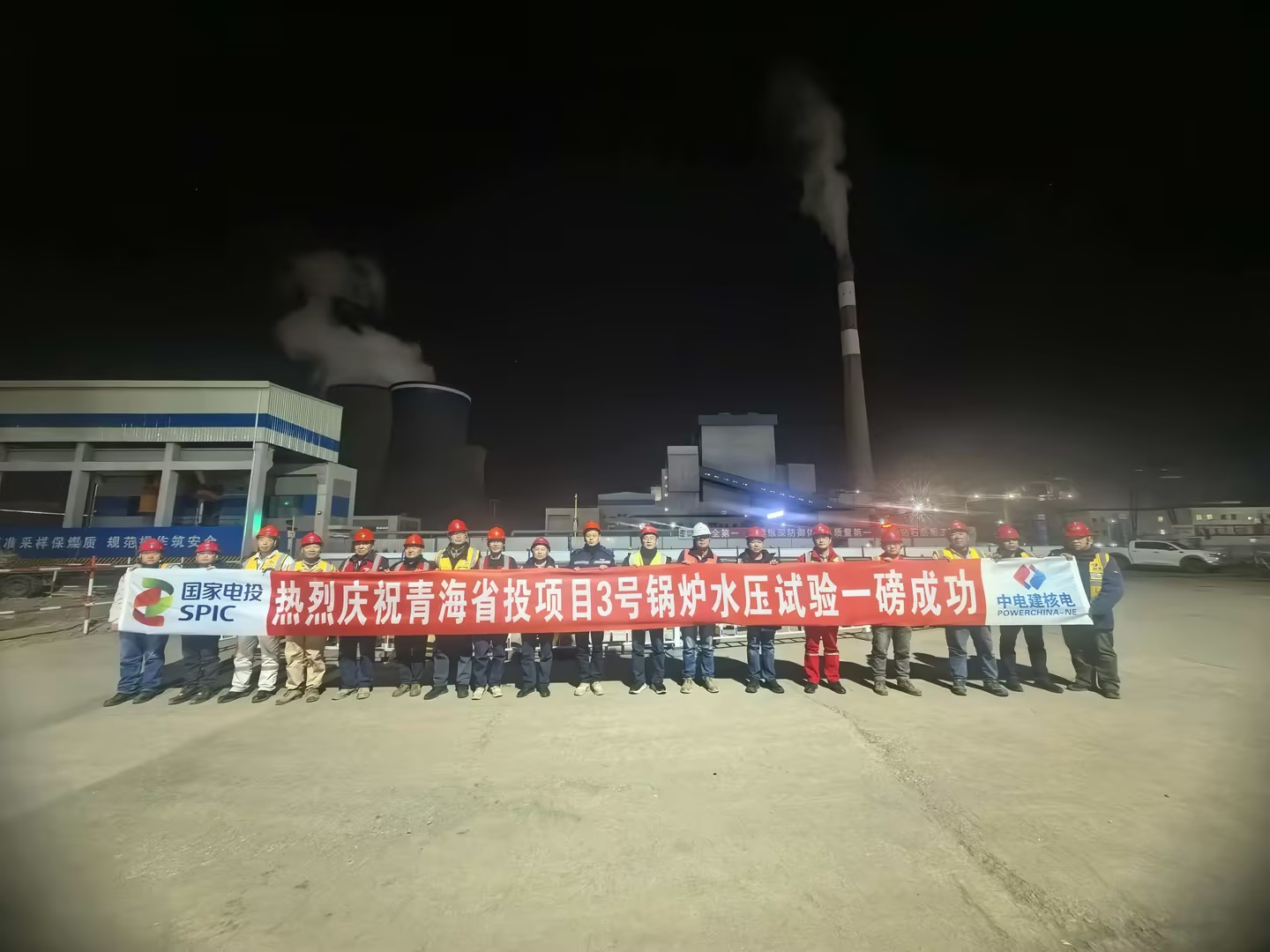 项目团队庆祝锅炉水压试验一磅成功