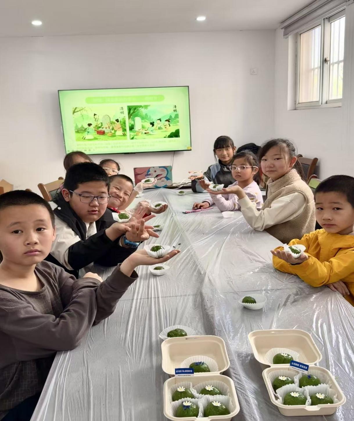 午后,艾草青团手作活动温情启幕,淡淡草木清香萦绕场馆。社教老师首先为同学们溯源青团文化源流,讲解其源于寒食节的历史渊源,以及清明食青团、追思怀远、迎春尝鲜的传统寓意,让大家先明其理,再践其行。活动选用优质艾草原料制作面皮,同学们循着传统手法,揉制青团面皮、包裹馅料、塑形成型,豆沙、咸蛋黄等经典馅料各具风味,一个个圆润翠绿的青团次第成型。蒸制过后,青团软糯鲜香,清香四溢,同学们在舌尖品味时节风味,于指尖传承传统食俗,沉浸式感受清明时节的民俗温情。