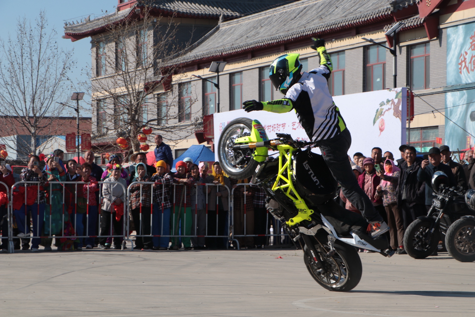 与往届不同,本届文化节大胆创新、破圈融合,首次引入机车巡游、民俗探秘、星空影院、千架无人机表演等新潮元素,让千年民俗与青春潮流同频共振,为传统节庆注入全新活力。其中,首届机车节成为本届文化节的爆款亮点,数百辆机车列队从鲁北民俗文化产业园出发,沿鼓楼、盘古大道一路巡游至刘古良民俗村、阳光田园小镇。引擎的轰鸣声响彻春日田野,酷炫的机车队伍穿梭在古朴村落与田园风光之间,传统与现代的碰撞勾勒出别样风景,引得沿途游客纷纷举起手机拍照、直播,定格动感瞬间。