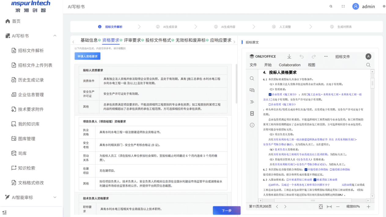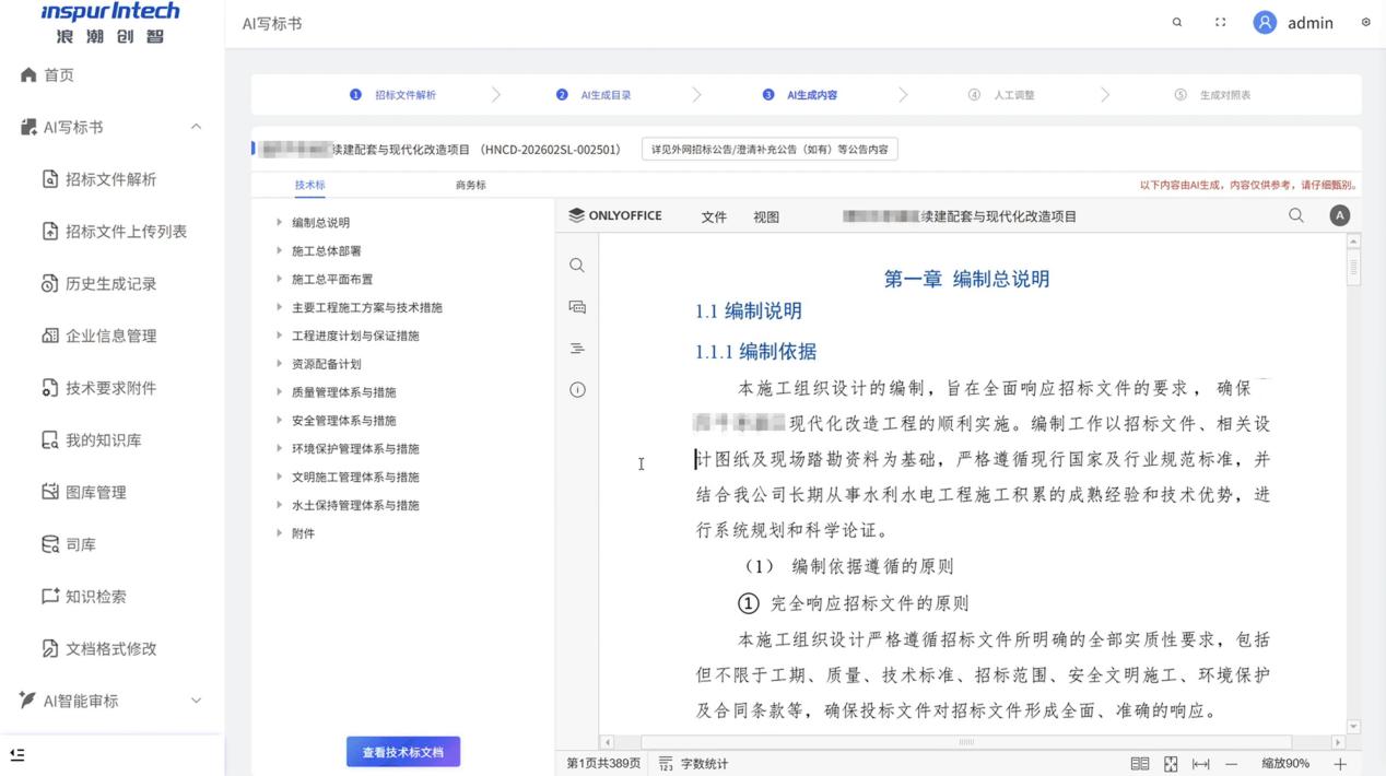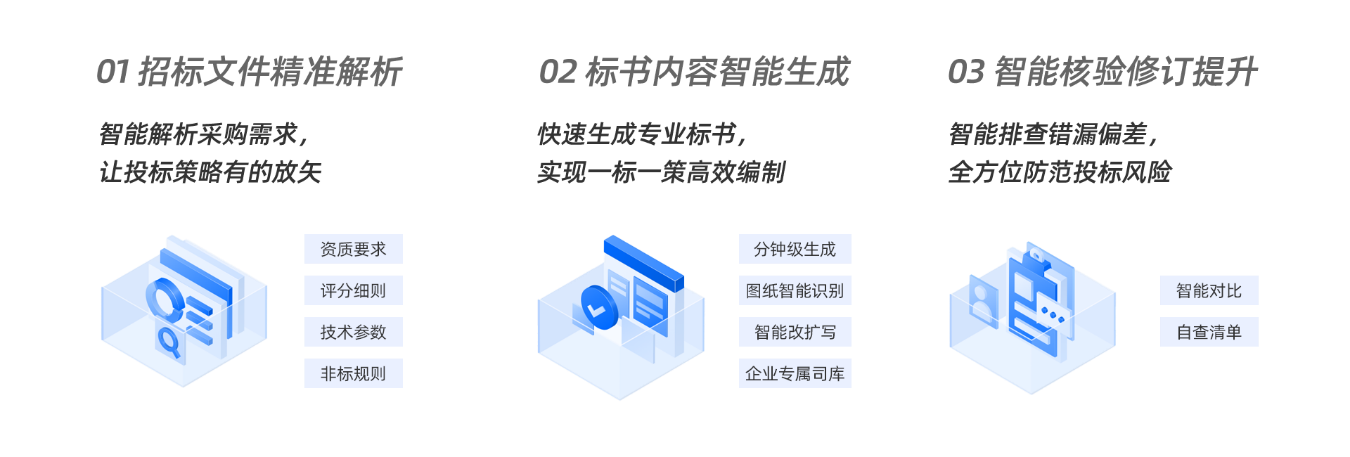智能体通过构建企业私有化投标知识中枢,可无缝对接企业专属司库,高效整合技术方案、历史标书、资质证照等核心投标资产,依据招标要求智能复用,实现万字专业投标方案分钟级产出,大幅缩减编制周期;通过融合多模态图纸智能识别与数据提取技术,可解析多格式工程图纸,可实现智能对照标书结构精准嵌入,让方案更贴合工程实际;通过搭配智能改写、扩写、缩写功能,可精准调整标书内容,真正实现一标一策、千标千面,显著提升响应效率、杜绝内容同质化,让每一份标书都能完整体现企业竞争力。