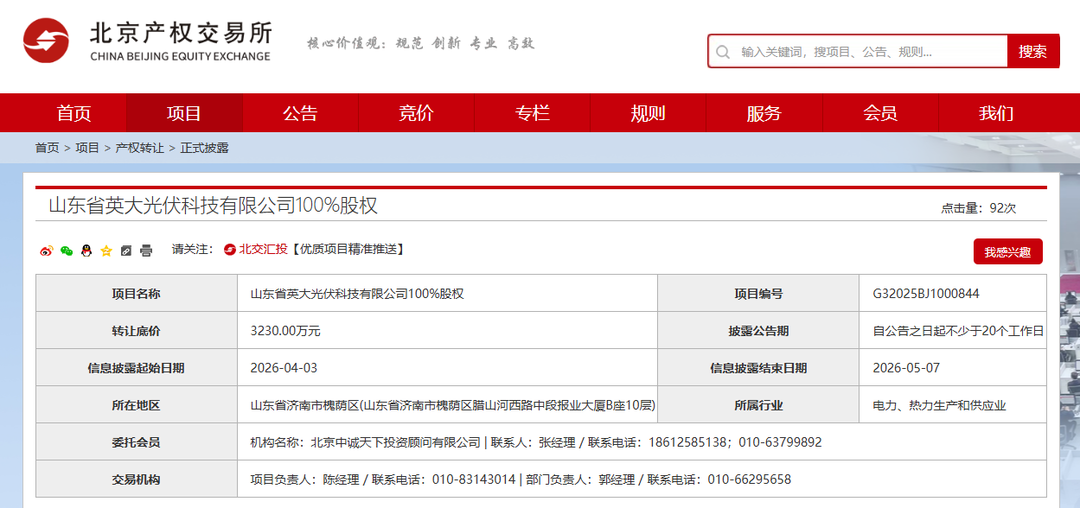 近日,国网电商科技公司(下称“国网电商”)一口气在北京产权交易所转让3家全资子公司,分别是国网电商(山西)新能源科技有限公司(下称“山西新能源”)100%股权及相关债权,国网智联(吉林)新能源有限公司(下称“吉林新能源”)100%股权及相关债权、山东省英大光伏科技有限公司(下称“英大光伏”)100%股权。三者转让底价分别为2902万元、1800万元和3230万元,合计达7932万元。