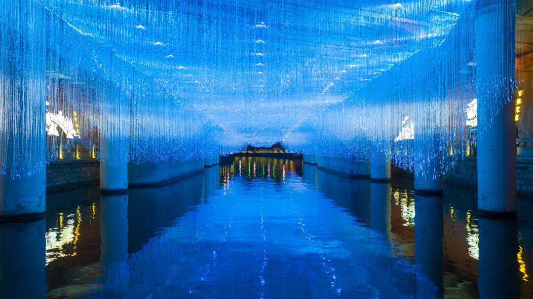 2026年新春之际,济南泉成集团借天下第一泉迎春花灯会的契机,对护城河进行全面的灯光氛围改造,让这条全国独有的泉水护城河焕发新光彩。作为改造的一大亮点,“蓝韵龙桥”景观以蓝色系的星河灯光装置为核心,与传统建筑肌理深度融合,将“桥载星河,梦渡古意”的浪漫想象落地成型,打造出可触可感的沉浸式光影空间,让古桥与星河相映,传统与现代相融。