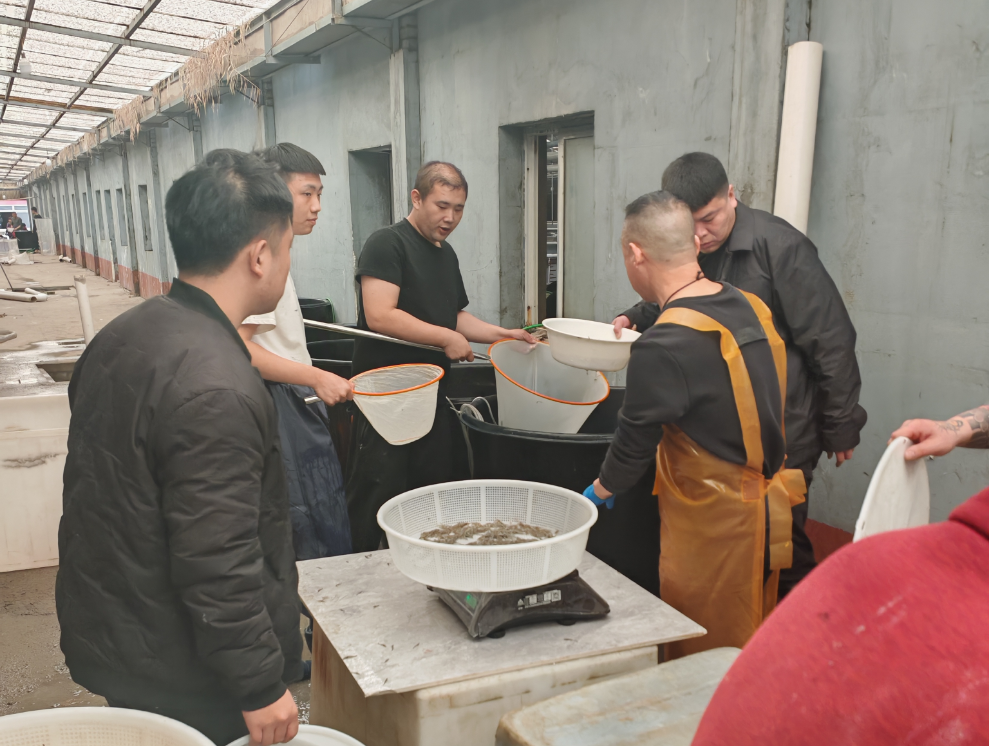考察团一行先后深入黄骅市恒泰水产养殖有限公司、南排河渤海水产品交易市场,通过现场观摩、技术交流、座谈研讨等方式,全面了解当地日本对虾产业发展现状与成功实践。在恒泰水产,考察团重点学习良种选育、工厂化循环水养殖、病害绿色防控等核心技术。该企业作为河北省农业产业化重点龙头企业,深耕北方对虾育苗二十余年,与厦门京赑水产达成区域独家合作,推广“大京一号”快大SPF日本对虾品系,依托130亩育苗基地、28000立方水体规模化繁育体系,实现良种就近稳定供给;全面推行工厂化无沙养殖,配套循环水、温控、增氧、精准排污及数字化管控系统,实现环境可控、病害少、全年可生产,构建“育苗—养殖—销售”一体化全链条模式,降本增效成效显著,为北方对虾产业高质量发展提供了可复制样板。