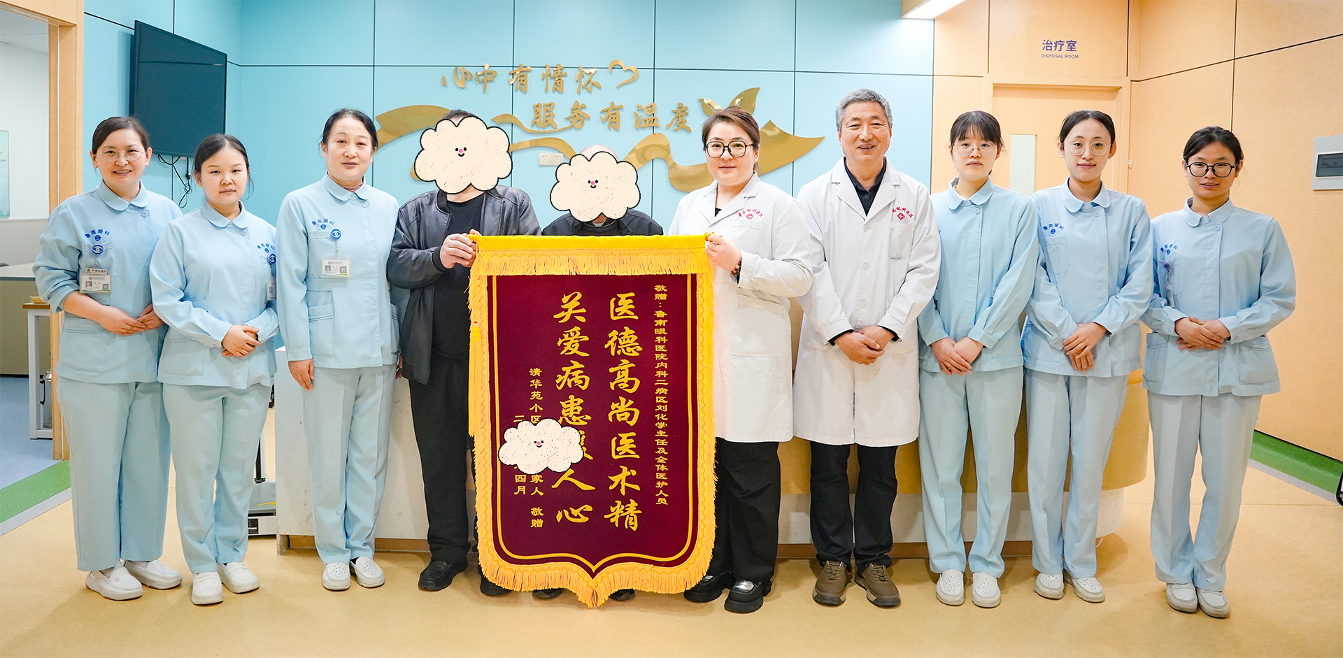出院当日,张女士及家属再三表达感谢,特意赠予一面写有“关爱病患暖人心 医德高尚医术精”的锦旗,以此肯定内科医护团队的专业医术与贴心服务。