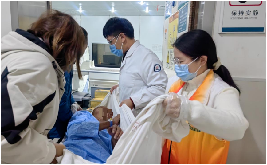 一位需要定期做核磁共振的老年患者,家属通过预约专线联系后,志愿者全程协助抬动身体、衔接检查流程;术后需多次往返CT室的患者,志愿者负责病房与检查科室间的转运,家属再也不用医院里来回跑断腿。