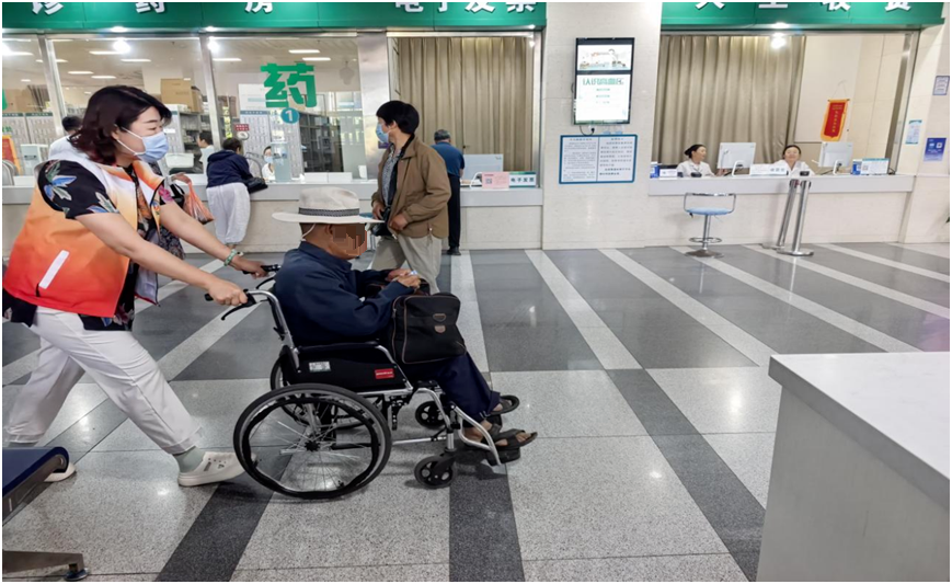 更重要的是,那些曾让老年患者头疼的自助机、手机挂号、扫码取报告,现在都有志愿者手把手教。“检查很快的,不用太担心”“我陪您一起等结果”——一句句暖心的安抚,让看病不再孤单。