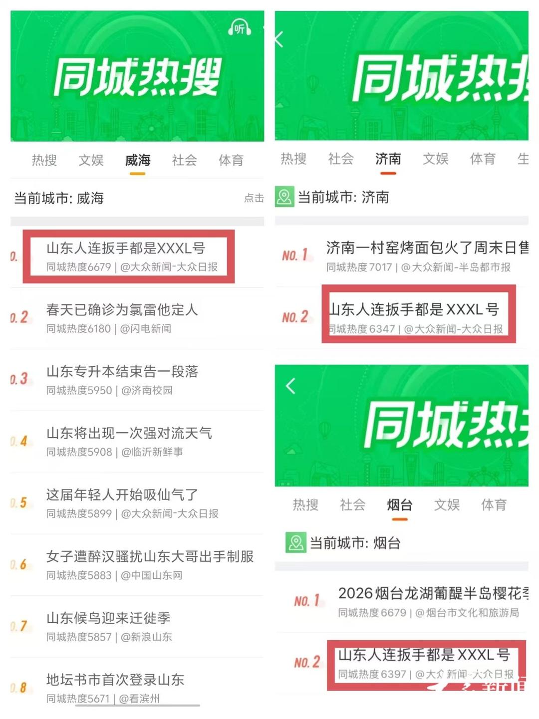 作品冲上同城热搜4件,其中1件跻身山东区域热搜。