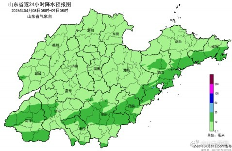 8日白天到夜间,全省天气多云转阴,鲁南和半岛地区有小到中雨并伴有雷电,其他地区有小雨。半岛地区南风5~6级阵风7~8级,临沂、日照和鲁中地区南风5~6级阵风7~8级转北风3~4级,其他地区南风4级阵风5~6级转北风3~4级,雷雨地区雷雨时阵风7~8级。