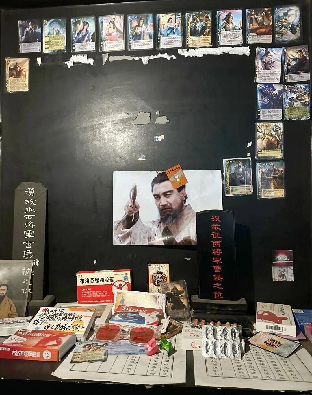 在河南安阳曹操高陵前,各种品牌的布洛芬被整齐摆放,附有“一日三次”的手写医嘱。这位一生与头风缠斗的枭雄,在千年后收到了最“对症”的关心。荒诞的形式下藏着一种天真的共情:年轻人用最直白的现代语言,试图缓解一位古人的千年之痛。