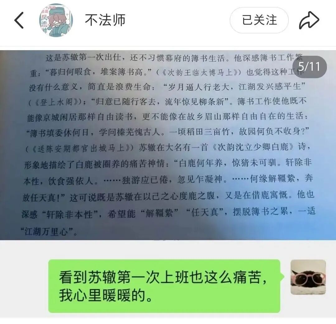 年轻人在白居易、苏轼、王安石的诗文中,发现了超越时空的“职场焦虑”和“生活疲惫”。当白居易写下“晨趋紫禁中,夕待金门诏”,年轻职场人看到的是“996”的古代版本;当苏轼在黄州写下“也拟哭途穷,死灰吹不起”,又在惠州发明“日啖荔枝三百颗”,年轻人看到的是“在逆境中自愈”的典范。古人不再是遥不可及的圣贤,而是同样会抱怨、会迷茫、会在困境中寻找出路的“过来人”。这种跨越时空的共鸣,恰恰反映了当代青年面对现实压力的某种心理代偿。在古人的故事中,他们看到了相似的困境,也找到了应对的勇气。