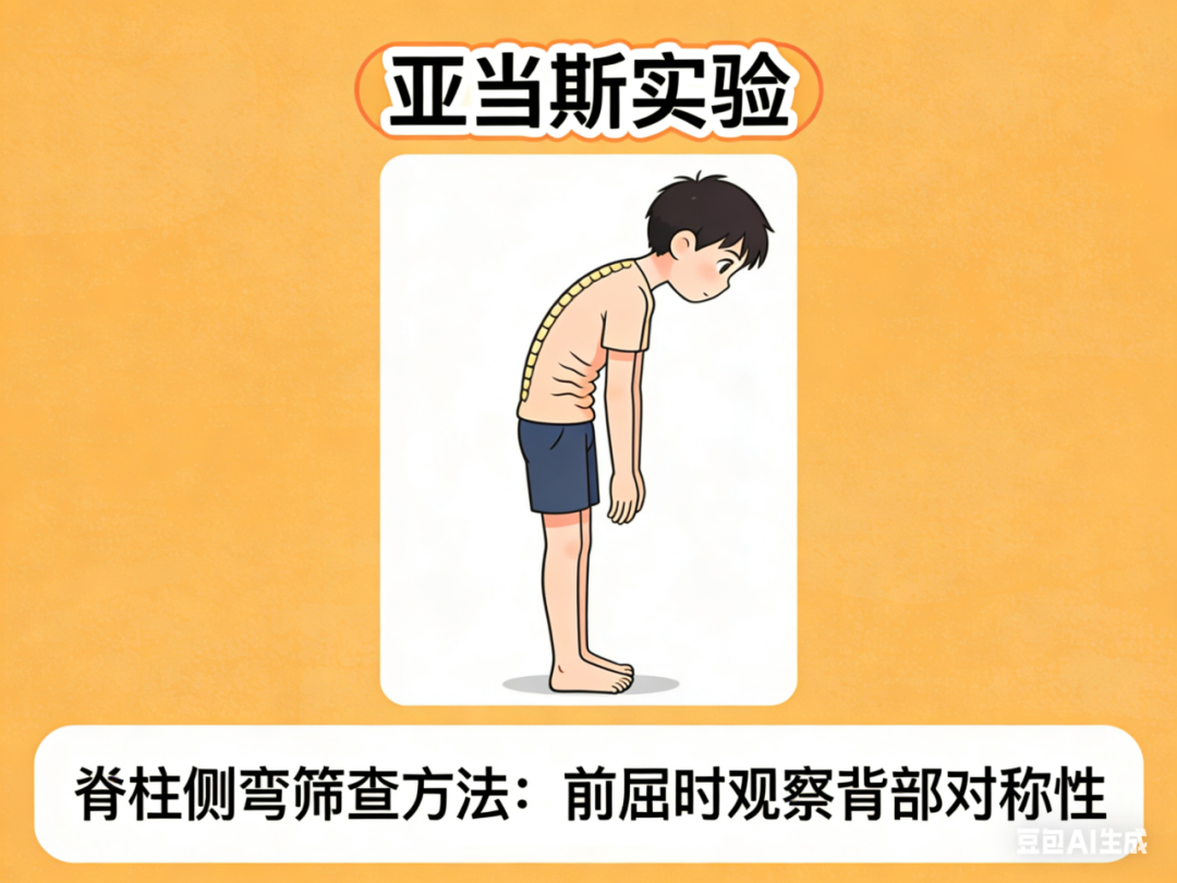 家长和老师可通过以下表现初步判断孩子是否可能存在脊柱侧弯: