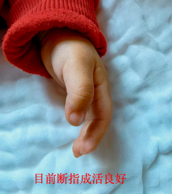 术后一周,安安的断指血运通畅,顺利度过血管危象期;术后一个月,断指功能逐步恢复,能够轻微活动。看着孩子的小手慢慢恢复正常,安安妈妈激动得热泪盈眶:“真的太感谢专家团队了,以为孩子的手指再也保不住了,是你们用精湛的技术,给了孩子完整的未来!”