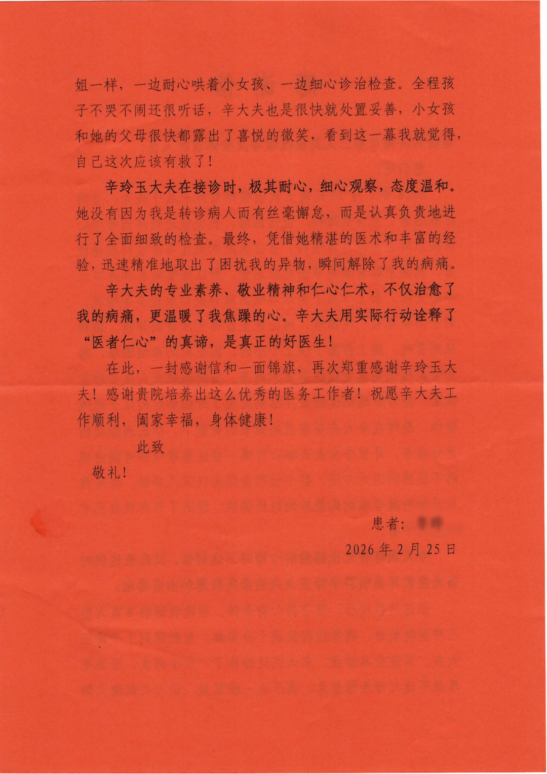 作为三甲医院,三院始终坚持以患者为中心,将解决患者病痛放在首位。辛玲玉医生用实际行动诠释了这一宗旨,用专业技术和人文关怀为患者解除了痛苦,也温暖了患者的心。