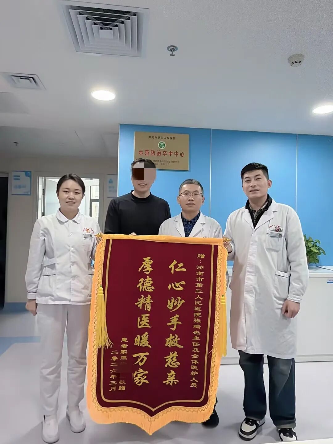 术后护理团队全程精细化照护,王阿姨恢复远超预期,第二天即可自如活动、清晰言语。家属对医院的快速救治与暖心服务感激不已,锦旗上的“仁心妙手救慈亲,厚德精医暖万家”,正是对三院卒中急救能力和优质护理服务的最好见证。