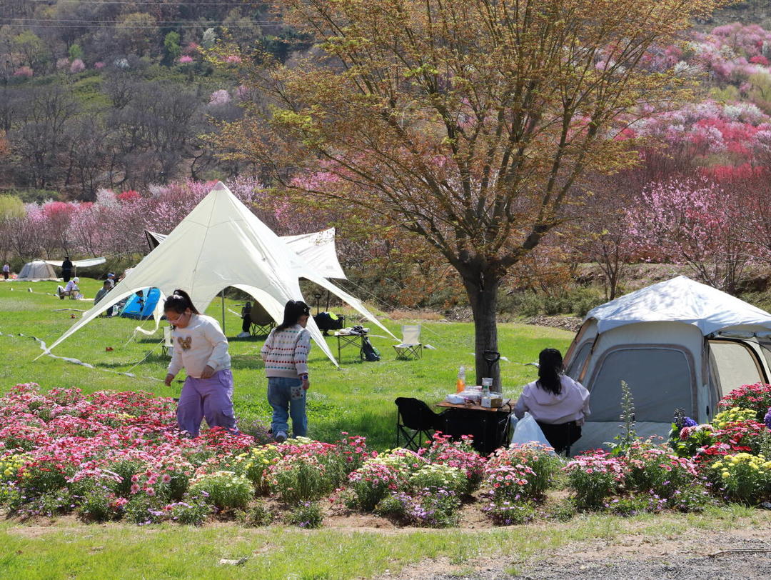假期期间,黄泥巷村、大下庄村都成为游客探寻春意的热门打卡地。在黄泥巷村,新业态与新景观交相辉映:新开业的“见山窑咖”将窑炉面包与现代咖啡文化巧妙融合,吸引了大批年轻游客专程前来品鉴打卡,文艺范儿与乡村野趣完美交织。而大下庄村的无比方花园内繁花似锦,成为游客踏青赏春的绝佳取景地。漫步在古朴的村落石巷,随处可见身着汉服的游客在山里河边留影。“我特意带老人孩子来,到了之后发现真是来对了,无比方花园里的花开得正好,孩子玩得很嗨,还能体验原汁原味的乡村生活,老人也觉得特别亲切,这种‘接地气’的踏青体验太难得了!”来自青岛市北区的游客张文文兴奋地说,他们一家三口一大早就驱车赶来了。据统计,清明节期间,片区内农家乐生意火爆,民宿预订率达90%,乡村游成功转化为“春日经济”,有效带动了村民增收。