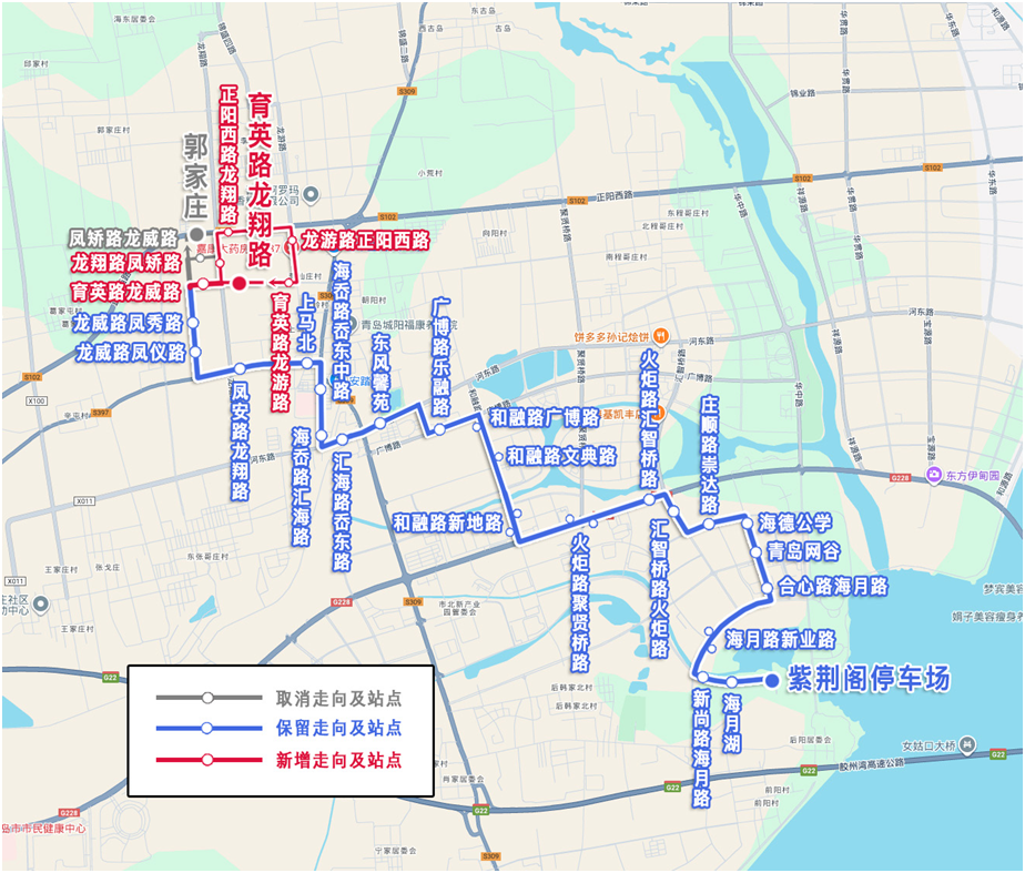 主站紫荆阁停车场,副站由郭家庄调整为育英路龙翔路,调整后为:紫荆阁停车场—育英路龙翔路。