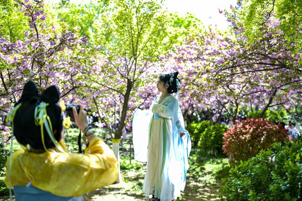 汉服秀、国风市集、花卉文创则成为今年济南花朝节的三大亮点。在各大公园的花事现场,身着汉服的市民游客随处可见,襦裙飘飘的少女穿梭在樱花树下、泉池边,与春日繁花构成一幅绝美的国风画卷,汉服租赁、旅拍也成为春日文旅的热门消费项目。国风市集里,花朝美食、手作花艺、特色文创错落排布,备受市民游客青睐,既藏着泉城的花韵又带着济南的泉味,让游客在沉浸式体验中感受济南的独特魅力。