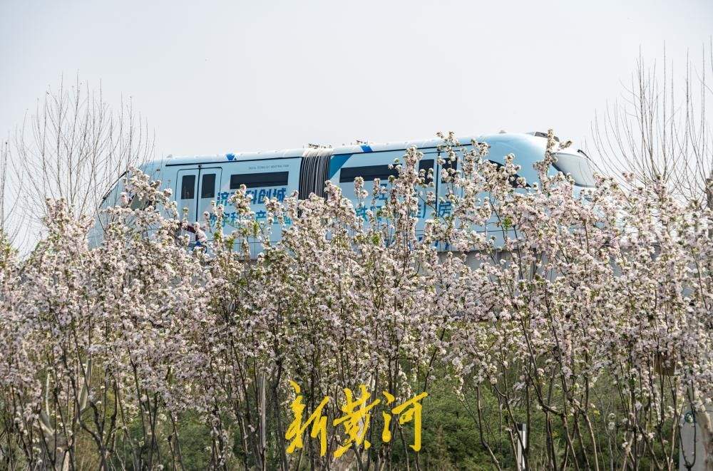 作为济南首条云巴线路,这条“空中走廊”不仅串联起城市脉络,更成为市民踏青赏春的移动观景台。云巴所经之处,粉白海棠花如云似霞,金黄连翘缀满枝头,与嫣红碧桃交相辉映,构成一幅生机勃勃的都市春景图。