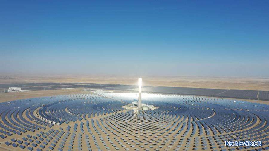 칭하이(青海)성 하이시(海西)멍구(蒙古)족짱(藏)족자치주 거얼무(格爾木)시에 위치한 광열발전소를 드론으로 촬영했다. (사진/신화통신)