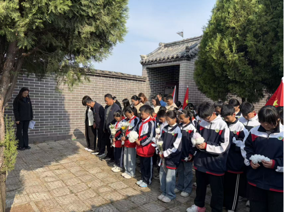学校负责人结合本地英雄事迹——西张少年英雄朱法芝、巾帼英雄韩大娘的故事,勉励师生铭记历史、勇担时代使命。全体党员教师重温入党誓词,少先队员重温入队誓词。最后,师生依次向纪念碑敬献自制小白花,缓步瞻仰烈士纪念碑。