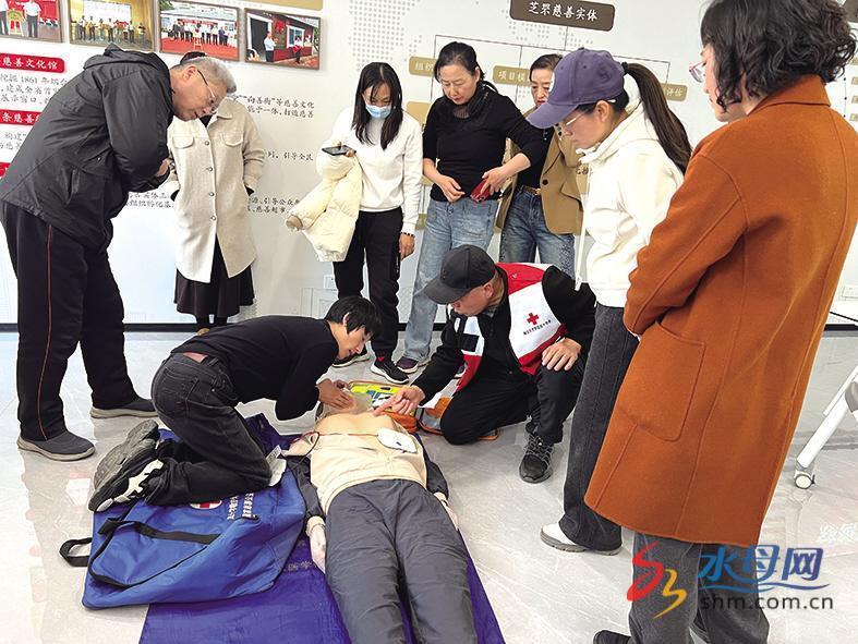 水母网4月6日讯(YMG全媒体记者 刘晓阳 通讯员 王艳惠 李斐 摄影报道)为进一步健全城市公共安全体系,提升基层群众应急救护能力,加快推进全市“5分钟社会救援圈”建设,近日,烟台市、区两级慈善总会联合芝罘区红十字会在烟台慈善文化馆开展第三期应急救护赋能培训,将专业急救技能送到群众身边,29名社区居民及慈善义工参与培训并掌握心肺复苏(CPR)与自动体外除颤器(AED)操作等核心急救技能。