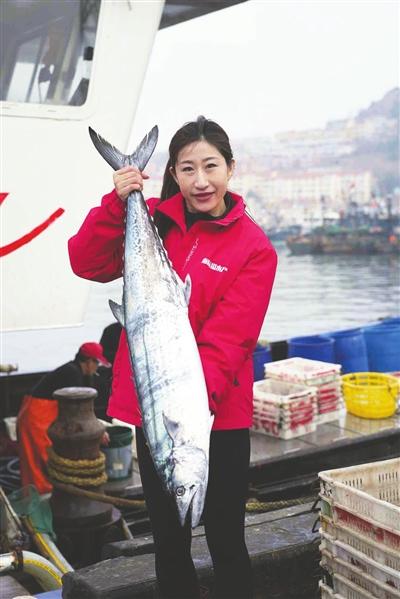董子艺展示新鲜上岸的鲅鱼。青岛早报/观海新闻记者 纪宣呈 摄