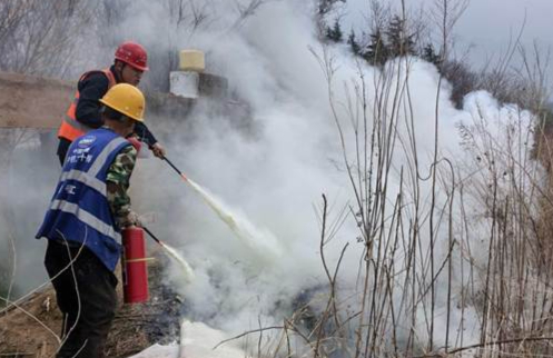 “集合!带好灭火器,火速赶往火情现场!”接到指令后,王志恒立即召集工班人员,大家动作娴熟、配合默契,迅速携带灭火器材奔赴火场。搬灭火器、提水桶,分工明确、有条不紊,完全复刻了平日消防演练的标准流程。浓烟呛得人睁不开眼,灼热气浪炙烤着脸颊,但没有一名员工退缩,大家顶着烟尘,精准对准火源根部喷射,默契配合阻断火势蔓延,重点守护施工围挡和青岛第一奶牛场安全,每一个动作都规范利落,每一次配合都无缝衔接,这正是班组建设凝聚合力、消防演练筑牢本领的生动体现。