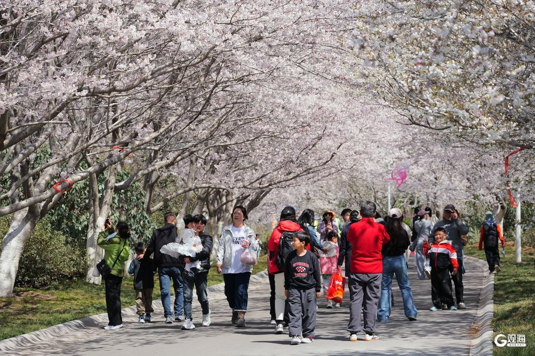 “刚踏入园内,漫山遍野的樱花便撞入眼帘,粉白花瓣随风轻舞,像极了童话里的飘雪。”4月5日,来自青岛市区的游客张心悦一家在西海岸新区张家楼街道画美达尼乡村振兴片区的泽丰生态园里流连忘返。作为青岛乡村游的“春日名片”,这里的万株樱花进入盛放期,第三届樱花节如期而至,早樱的清丽与晚樱的雍容交相辉映,河道蜿蜒其间,宛若“人在画中游”。