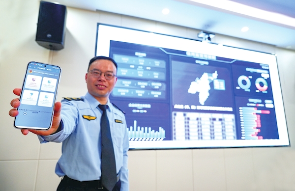 执法人员展示“信用监管驾驶舱”。记者路龙帅摄