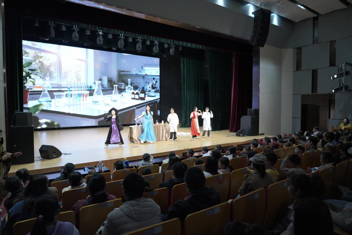 假期首日,科普剧场率先“出圈”。山东理工大学志愿者团队带来的科普剧《化学殿堂之记忆寻回之旅》精彩上演,孩子们跟随“奇异博士”与“化学精灵”,在剧情中探秘、参与“指示剂显色”等实验,智斗“变形怪”,沉浸式感受化学魅力,现场互动热烈、掌声不断。